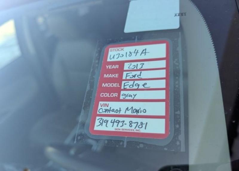 LOCAL TRADE, HEATED SEATS, LEATHER, ALL WHEEL DRIVE, DUAL CLIMATE CONTROL, PARK ASSIST, POWER LIFTGATE, CRUISE CONTROL, POWER SEAT, POWER WINDOWS, POWER LOCKS, BACK-UP CAMERA, ALUMINUM/ALLOY WHEELS, ACCIDENT FREE, CLEAN AUTOCHECK, VISIT [url] the Cedar Valley Area for 3 Generations as one of MIDWEST'S LARGEST DEALER GROUPS including Cedar Rapids, Dubuque, Iowa City, Des Moines, West Des Moines, Davenport, Clinton, Urbandale, Marion, Marshalltown, Mason City, Fort Dodge, Ankeny, Waterloo, Ames, Burlington, Quad Cities, Waukee, Johnston & Muscatine. Recent Arrival!Awards: * Ward's 10 Best Engines * 2013 [url] Brand Image AwardsReviews: * The Ford Edge offers a balanced ride, multiple engine choices, and a wide range of tech and amenity options that can morph it from a sub-$30,000 family hauler to a powerful, blinged-out machine reaching over $45,000. Source: [url] * Quiet and comfortable cabin; abundant features; comfortable ride; composed handling; available EcoBoost four-cylinder engine. Source: Edmunds