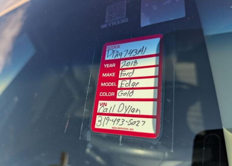 This Edge is a local trade on a brand new Ram! It's a great option with mileage well below the market average and all wheel drive!LOCAL TRADE, DEERY CERTIFIED, ALL WHEEL DRIVE, DUAL CLIMATE CONTROL, CRUISE CONTROL, BLUETOOTH, POWER SEAT, POWER WINDOWS, POWER LOCKS, BACK-UP CAMERA, ALUMINUM/ALLOY WHEELS, GREAT PAYMENT OPTIONS, CLEAN AUTOCHECK, VISIT [url] program details: Deery Certified Pre-Owned Details. *$0 Deductible ** 3 Months or 3,000 Miles (whichever comes first ) ** Systems Covered - Gasoline/ Diesel Engine , Transmission , Drive Axle, Hybrid Components , Filters, Lubricants & Taxes and Seals and Gaskets ** See Dealer for More Information. Recent Arrival! Odometer is 9216 miles below market average! 20/27 City/Highway MPGCertification Program Details: 3 month / 3,000 miles Awards: * 2018 [url] 10 Most Awarded Brands * 2018 [url] Brand Image AwardsServing the Cedar Valley Area for 3 Generations as one of MIDWEST'S LARGEST DEALER GROUPS including Cedar Rapids, Dubuque, Iowa City, Des Moines, West Des Moines, Davenport, Clinton, Urbandale, Marion, Marshalltown, Mason City, Fort Dodge, Ankeny, Waterloo, Ames, Burlington, Quad Cities, Waukee, Johnston & Muscatine.