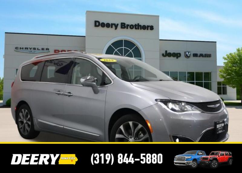 This Local Purchase is Deery Certified and has a Clean Carfax! Deery Certified, Local Purchase, Clean Carfax, 115V Auxiliary Power Outlet, 20 harman/kardon Speakers, 20 Speaker harman/kardon Sound Group, 20' x 7.5' Aluminum Wheels, 220 Amp Alternator, 3-Channel Video Remote Control, 3-Channel Wireless Headphones, 360 Surround View Camera System, 3rd row seats: split-bench, 7 4 Pin Trailer Tow Wiring Harness, 760 Watt Amplifier, Adaptive Cruise Control w/Stop Go, Advanced Brake Assist, Advanced SafetyTec Group, Apple CarPlay/Android Auto, Auto High-beam Headlights, Automatic High Beam Headlamp Control, Blu-Ray/DVD Player/USB Port, Full Speed Forward Collision Warning Plus, Heated front seats, Heated rear seats, Heated steering wheel, Heavy-Duty Radiator, High Definition Multimedia Interface, High-Intensity Discharge Headlights, Hitch w/2' Receiver, Lane Departure Warning Plus, Leather steering wheel, Memory seat, Navigation System, Parallel Perp Park Assist w/Stop, ParkSense Front/Rear Park Assist w/Stop, ParkView Rear Back-Up Camera, Power driver seat, Power Liftgate, Power moonroof, Quick Order Package 27P, Radio: Uconnect 4C Nav w/8.4' Display, Rain sensing wipers, Rain Sensitive Windshield Wipers, Reclining 3rd row seat, Seatback Video Screens, Tire Wheel Group, Trailer Sway Damping, Trailer Tow Group - 3,600 lb Rating, Uconnect Theater w/Streaming, Ventilated front seats, Video USB Port. The Deery discount that you see includes a Dealer Trade In Assistance Bonus discount of $1,000. Trade in must be 2008 or newer with less than 200,000 miles, and have a clean title. Certified. Odometer is 29810 miles below market average! Recent Arrival! Billet Silver Metallic Clearcoat 2018 Chrysler Pacifica Limited 4D Passenger Van 3.6L V6 24V VVT 19/28 City/Highway MPG 9-Speed Automatic FWD Certification Program Details: DEERY CERTIFIED PRE-OWNED DETAILS: - $0 Deductible - 3 Months or 3,000 Miles (whichever comes first ) - Systems Covered: Gasoline/ Diesel Engine , Transmission , Drive Axle, Hybrid Components , Filters, Lubricants Taxes and Seals and Gaskets ** See Dealer for More Information. Awards: * JD Power Automotive Performance, Execution and Layout (APEAL) Study * 2018 [url] Best Family Cars * 2018 [url] 10 Most Affordable 3-Row Vehicles Serving Iowa City, Cedar Rapids, Waterloo, North Liberty, Davenport, Muscatine, Quad Cities, Des Moines, Keokuk, Mount Pleasant, Washington, and Dubuque. Don't miss out! Give us a call at [phone] to confirm availability and schedule a test-drive.