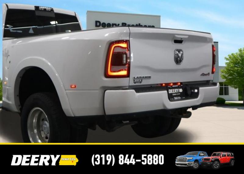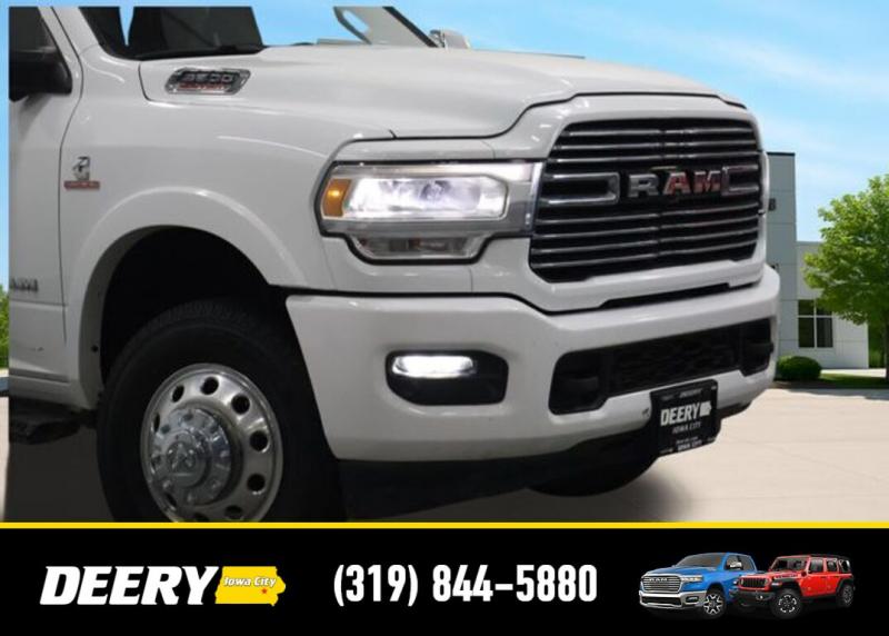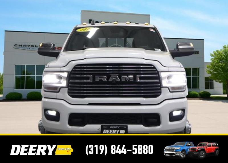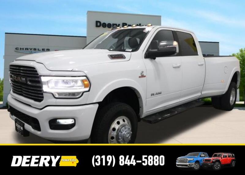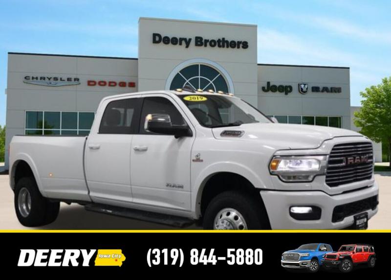 This Local Trade In has a Clean Carfax and is Deery Certified! It was traded in for a brand new Ram 3500! Deery Certified, Local Trade In, Clean Carfax, #1 Seat Foam Cushion, 115V Auxiliary Rear Power Outlet, 2 Way Rear Headrest Seat, 2nd Row In Floor Storage Bins, 4 Way Front Headrests, 5th Wheel/Gooseneck Towing Prep Group, 6000# Front Axle w/Hub Ext, Auto High Beam Headlamp Control, Bed Utility Group, Black Interior Accents, Blind Spot Cross Path Detection, Body Color Door Handles, Body Color Grille Surround, Box Rear Fender Clearance Lamps, Bucket Seats, Clearance Lamps, CTR Stop Lamp w/Cargo View Camera, Deployable Bed Step, Dual Rear Wheels, Exterior Mirrors w/Memory, Folding Flat Load Floor Storage, Front Seat Back Map Pockets, Full Length Upgraded Floor Console, Heated front seats, Heated Second Row Seats, Heated Steering Wheel, High Back Seats, Laramie Level 1 Equipment Group, Leather Trimmed Bucket Seats, LED Bed Lighting, Mirror-Mounted Aux Reverse Lamps, Painted Front Bumper, Painted Rear Bumper, ParkView Rear Back-Up Camera, Power 2-Way Driver Lumbar Adjust, Power 2-Way Passenger Lumbar Adjust, Power 8-Way Adjustable Passenger Seat, Power Adjust 8-Way Driver Seat, Power Adjustable Convex Aux Mirrors, Power Adjustable Pedals w/Memory, Power Chrome Tow Mirrors w/Convex Spotter Memory, Power passenger seat, Quick Order Package 2HH Laramie, Radio/Driver Seat/Mirrors/Pedals Memory, Rain Sensitive Windshield Wipers, Rear 60/40 Folding Seat, Rear Wheelhouse Liners, Remote Tailgate Release, Single Disc Remote CD Player, Sport Appearance Package, Sport Decal, Spray In Bedliner, Surround View Camera System, Tire Pressure Monitoring Delete, Towing Technology Group, Trailer Reverse Guidance, Ventilated Front Seats, Wheels: 17' x 6.0' Polished Aluminum. The Deery discount that you see includes a Dealer Trade In Assistance Bonus discount of $1,000. Trade in must be 2008 or newer with less than 200,000 miles, and have a clean title. Clean CARFAX. Certified. Recent Arrival! Bright White Clearcoat 2019 Ram 3500 Laramie 4D Crew Cab Cummins 6.7L I6 Turbodiesel 6-Speed Automatic 4WD Certification Program Details: DEERY CERTIFIED PRE-OWNED DETAILS: - $0 Deductible - 3 Months or 3,000 Miles (whichever comes first ) - Systems Covered: Gasoline/ Diesel Engine , Transmission , Drive Axle, Hybrid Components , Filters, Lubricants Taxes and Seals and Gaskets ** See Dealer for More Information. Serving Iowa City, Cedar Rapids, Waterloo, North Liberty, Davenport, Muscatine, Quad Cities, Des Moines, Keokuk, Mount Pleasant, Washington, and Dubuque. Don't miss out! Give us a call at [phone] to confirm availability and schedule a test-drive.