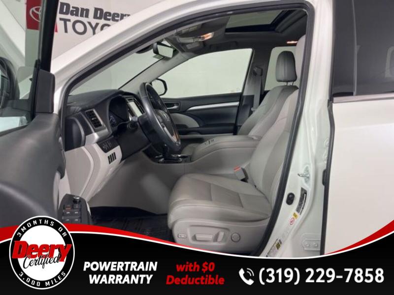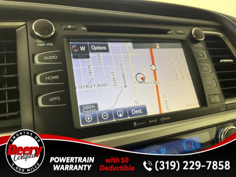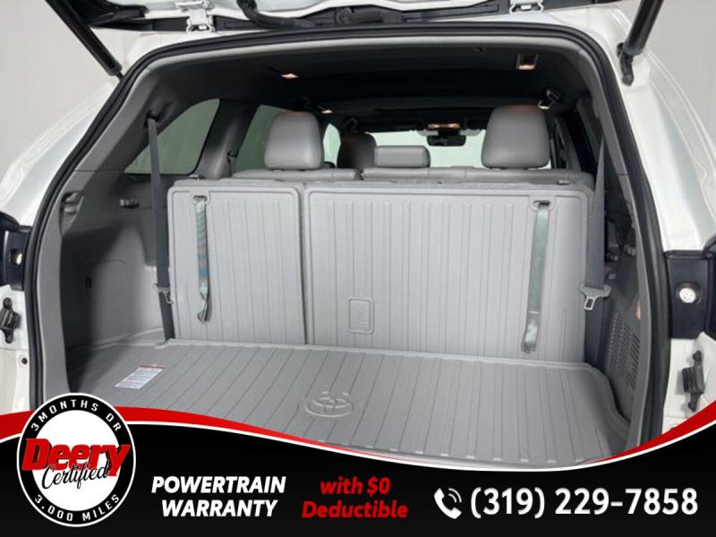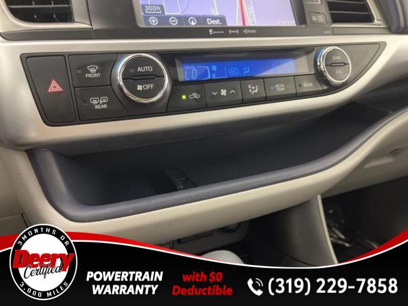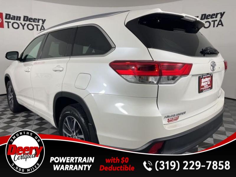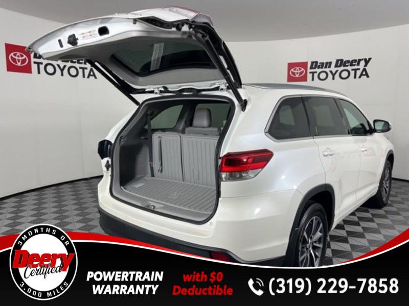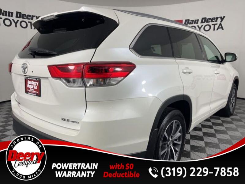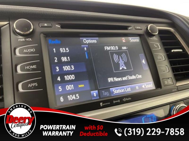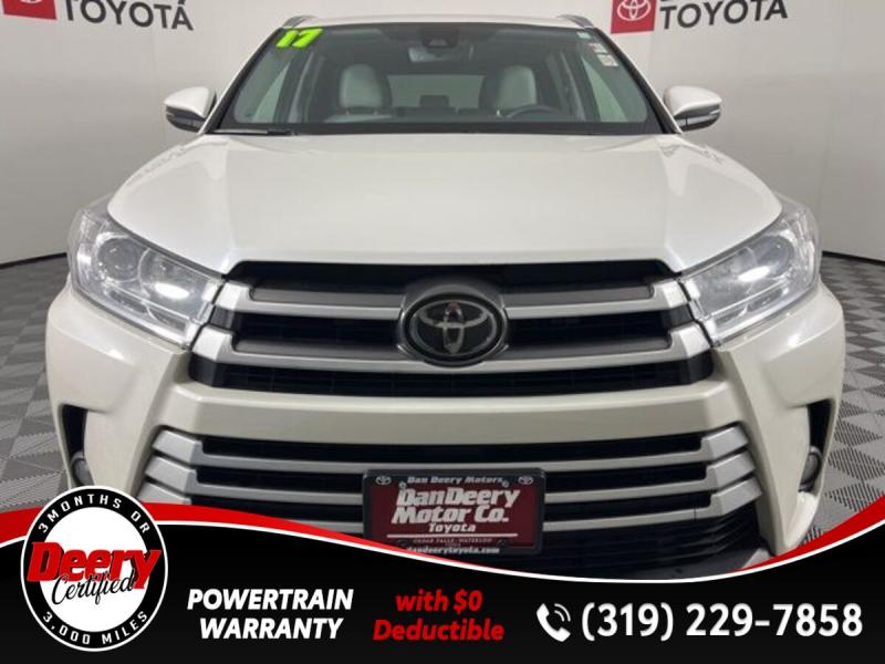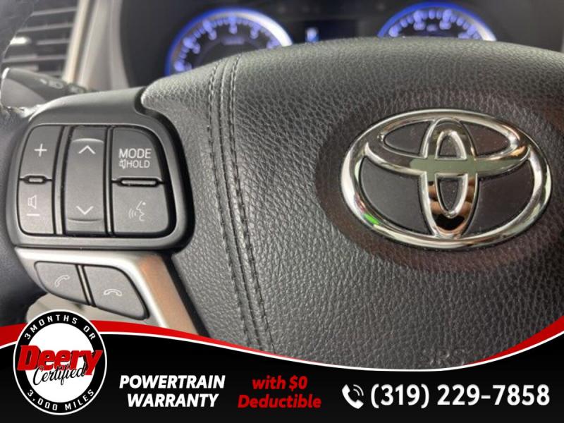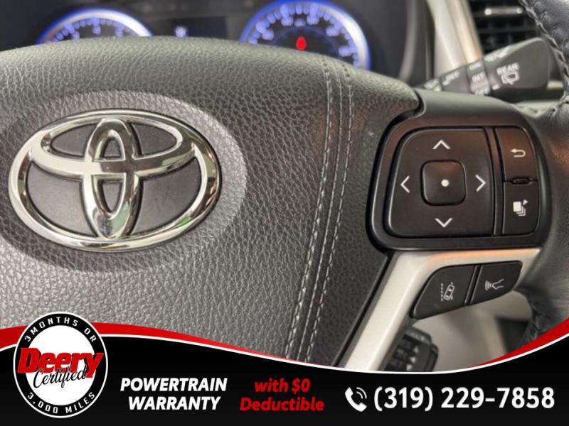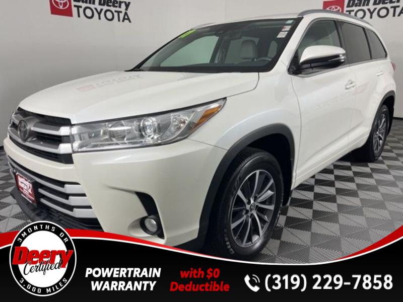 * DEERY CERTIFIED *, * ONE OWNER LOCAL TRADE *, * AWD *, * LEATHER *, * HEATED SEATS *, * NAVIGATION *, * SUNROOF/MOONROOF *, * BACK-UP CAMERA *, * BLIND SPOT MONITOR *, * 2ND ROW BENCH SEAT *, * 3RD ROW *, * BLUETOOTH AUDIO/PHONE *, * POWER LIFT GATE *, * ALLOY WHEELS *, * LANE DEPARTURE ALERT/ASSIST *, * TOYOTA SAFETY SENSE *, * POWER SEAT *, * SIRIUS/XM RADIO *, * POWER WINDOWS *, * POWER DOOR LOCKS *, * CRUISE CONTROL *, * RADAR/ADAPTIVE CRUISE CONTROL *, * SMART KEY ENTRY *, * XLE PACKAGE *.Certification Program Details: Deery Certified Pre-Owned Details: * $0 Deductible * * 3 Months or 3,000 Miles (whichever comes first) * * Systems Covered * Gasoline/Diesel Engine, Transmission, Drive Axle, Hybrid Components, Filters, Fluids, Lubricants & Taxes and Seals and Gaskets * * See Dealer for More Information *Awards: * 2017 [url] 12 Best Family Cars * 2017 [url] 10 Most Awarded Brands * 2017 [url] Best Resale Value AwardsServing the Cedar Valley Area for 3 Generations as one of MIDWEST'S LARGEST DEALER GROUPS including Cedar Falls, Cedar Rapids, Dubuque, Iowa City, Des Moines, West Des Moines, Davenport, Clinton, Urbandale, Grimes, Marion, Marshalltown, Mason City, Fort Dodge, Ankeny, Waterloo, Ames, Burlington, Quad Cities, Waukee, Johnston & Muscatine.