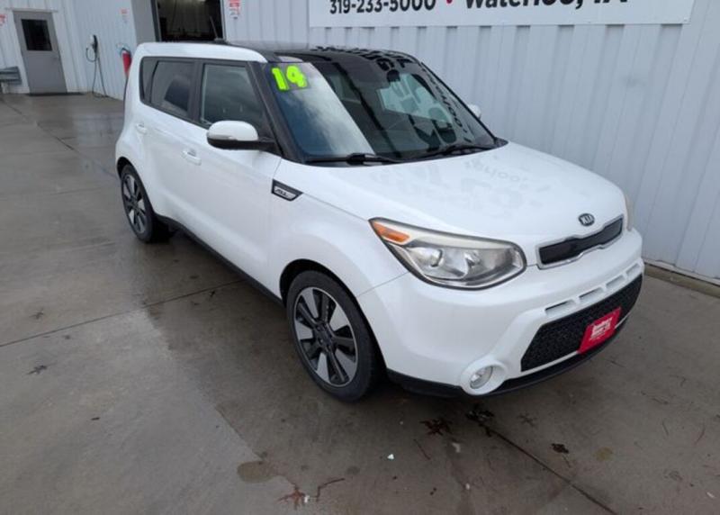 LOCAL TRADE, PANORAMIC SUNROOF, NAVIGATION, CRUISE CONTROL, BLUETOOTH, POWER SEAT, POWER WINDOWS, POWER LOCKS, BACK-UP CAMERA, ALUMINUM/ALLOY WHEELS, GREAT PAYMENT OPTIONS, GAS SAVER, CLEAN AUTOCHECK, VISIT [url] the Cedar Valley Area for 3 Generations as one of MIDWEST'S LARGEST DEALER GROUPS including Cedar Rapids, Dubuque, Iowa City, Des Moines, West Des Moines, Davenport, Clinton, Urbandale, Marion, Marshalltown, Mason City, Fort Dodge, Ankeny, Waterloo, Ames, Burlington, Quad Cities, Waukee, Johnston & Muscatine. Recent Arrival! 23/31 City/Highway MPGAwards: * JD Power Automotive Performance, Execution and Layout (APEAL) Study * 2014 [url] 10 Coolest New Cars Under $18,000 * 2014 [url] Brand Image AwardsReviews: * Kia has nailed the daring-but-darling design aesthetic with the 2014 Soul. People love the look of the Soul, and we're guessing you might too. As a bonus that cute exterior houses a surprisingly plush interior for the price and more passenger space than you might imagine. Source: [url] * Loads of available features; attractive cabin with user-friendly controls and ample passenger space; long warranty. Source: Edmunds