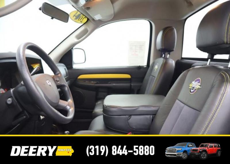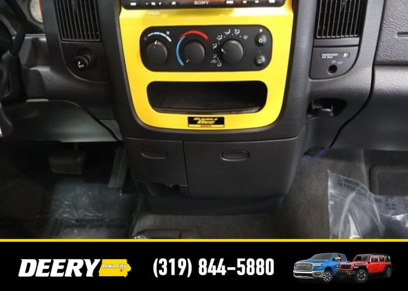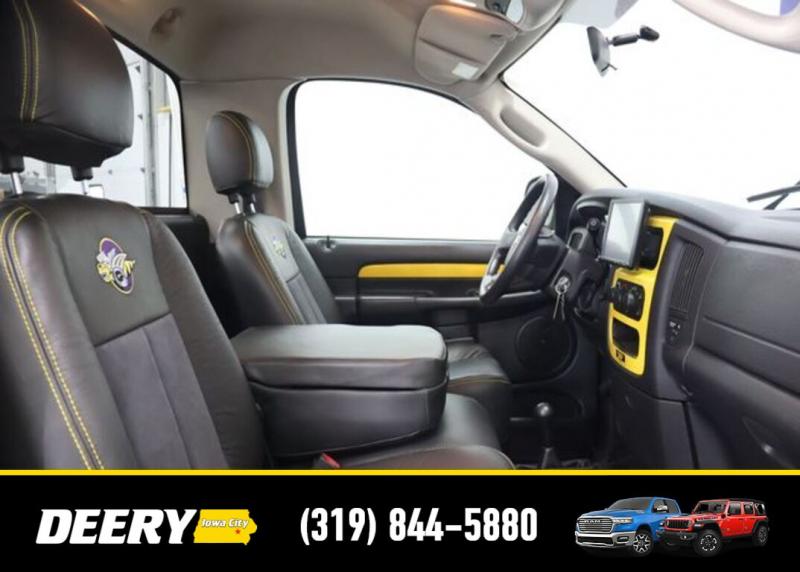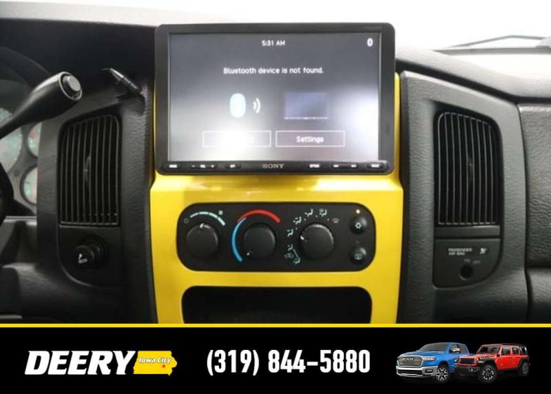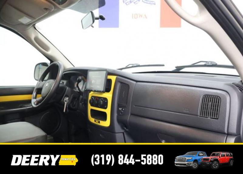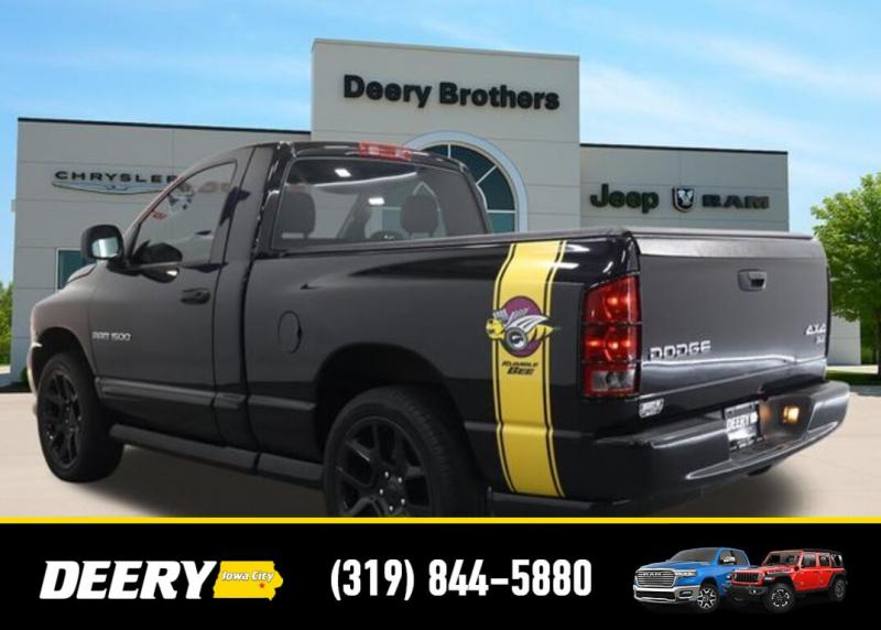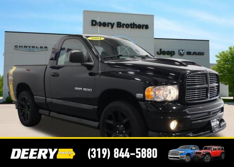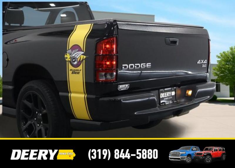 This very RARE 2004 Rumble Bee is Number 3 of 3700! It is a Local Purchase with a Clean Carfax! It is priced As Is No Warranty due to it's age, but it is in immaculate shape and has been restored. It has a Sony 9' Touchscreen w. Apple CarPlay, Pioneer Sound System w. 10' Pioneer Subwoofer, Cat-back exhaust system, Lowered 2' Drop Shackles Suspension, Sport Muscle 22' Gloss Black Wheels, Goodyear Eagle Touring Tires, Access LiteRider Tonneau Cover, Mopar Genuine Rumble Bee Leather Seats and more! Don't wait on this one it won't last long! Local Trade In, Clean Carfax, As Is No Warranty, Rumble Bee Group, 2' Lowered Drop Shackle Suspension, Mopar Rumble Bee Leather Seats, 22' Gloss Black Sport Muscle Wheels, 9' Sony Touchscreen w. Apple CarPlay, Pioneer Sound System w. 10' Pioneer Subwoofer, Cat-back Exhuast System, Access LiteRider Tonneau Cover, Goodyear Eagle Touring Tires, 17' x 8' Machined Cast Aluminum Wheels, Body Color Bodyside Molding, Body Color Grille, Front Body Color Fascia, Quick Order Package 26G SLT, Rear Body Color Bumper w/Step Pads, Sport Appearance Group. As Is - No Warranty. Clean CARFAX. Recent Arrival! Black Clearcoat 2004 Dodge Ram 1500 SLT 2D Standard Cab HEMI Magnum 5.7L V8 SMPI 13/17 City/Highway MPG 5-Speed Automatic 4WD Serving Iowa City, Cedar Rapids, Waterloo, North Liberty, Davenport, Muscatine, Quad Cities, Des Moines, Keokuk, Mount Pleasant, Washington, and Dubuque. Don't miss out! Give us a call at [phone] to confirm availability and schedule a test-drive.