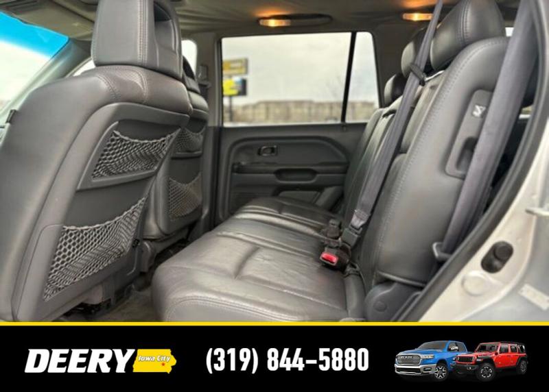This Local Trade In was traded in for a Deery Certified Ford Explorer! It is priced As Is No Warranty due to the age, mileage, interior/exterior cosmetic condition, and mechanical condition, but it does run drive! Local Trade In, As Is No Warranty, 3rd row seats: split-bench, Alloy wheels, Automatic temperature control, CD player, Heated front seats, Leather Seat Trim, Power driver seat, Power moonroof. As Is - No Warranty. Recent Arrival! Silver 2005 Honda Pilot EX-L 4D Sport Utility 3.5L V6 SOHC 24V VTEC 17/22 City/Highway MPG 5-Speed Automatic with Overdrive 4WD Awards: * 2005 [url] 10 Best Used Cars Under $8,000 For more information, visit [url] Kelley Blue Book is a registered trademark of Kelley Blue Book Co., Inc. Serving Iowa City, Cedar Rapids, Waterloo, North Liberty, Davenport, Muscatine, Quad Cities, Des Moines, Keokuk, Mount Pleasant, Washington, and Dubuque. Don't miss out! Give us a call at [phone] to confirm availability and schedule a test-drive.
