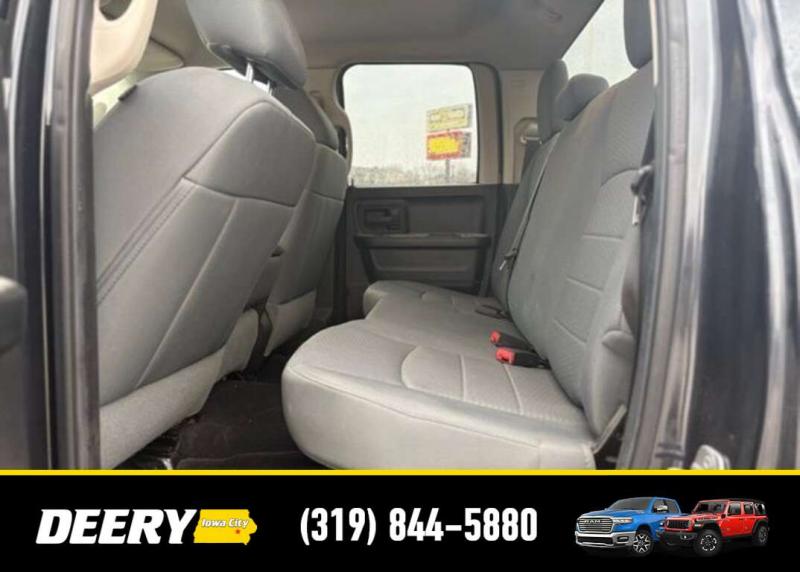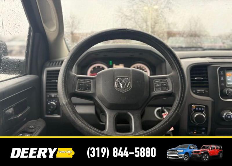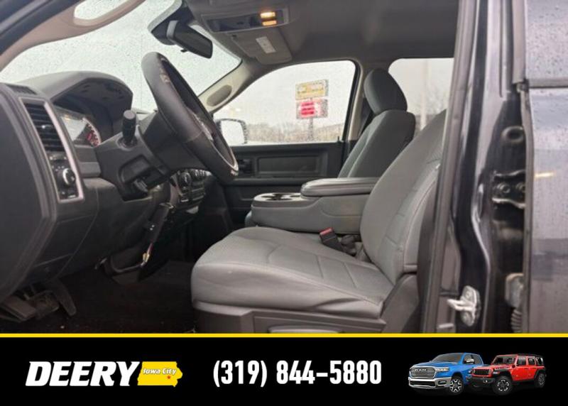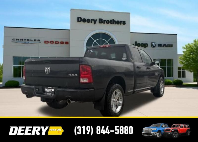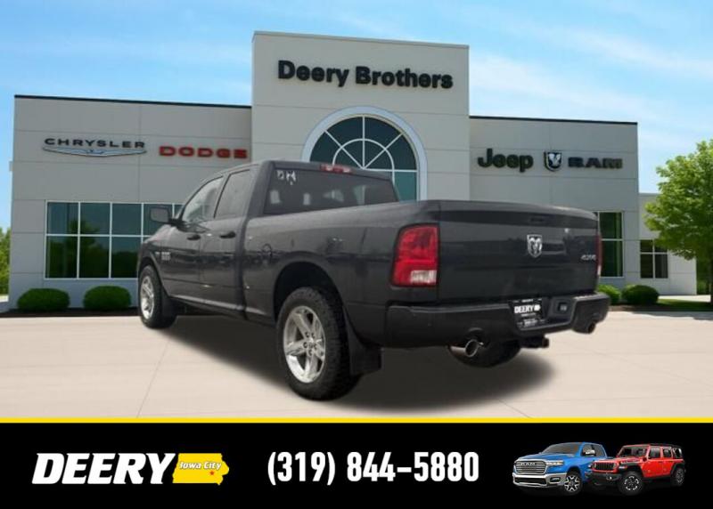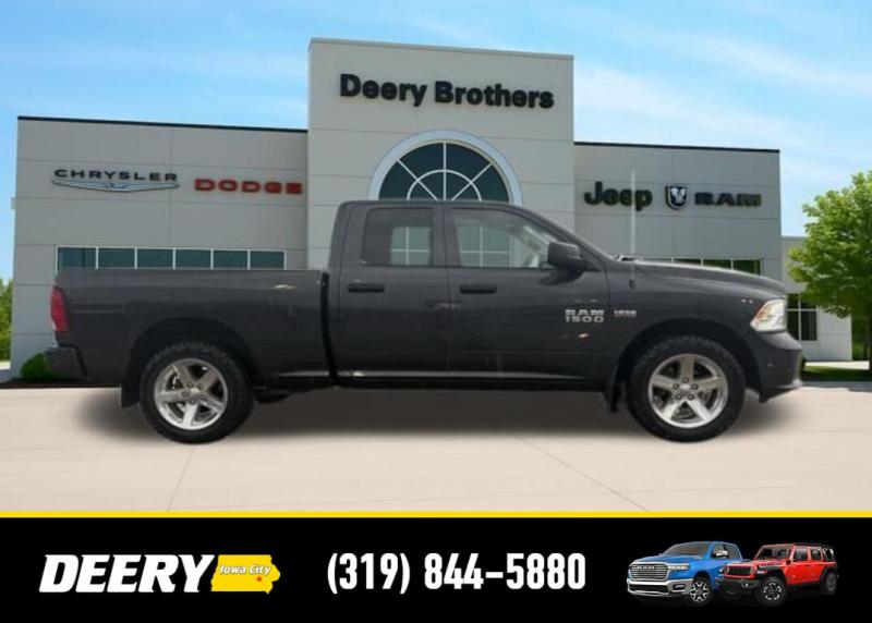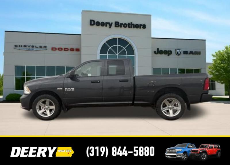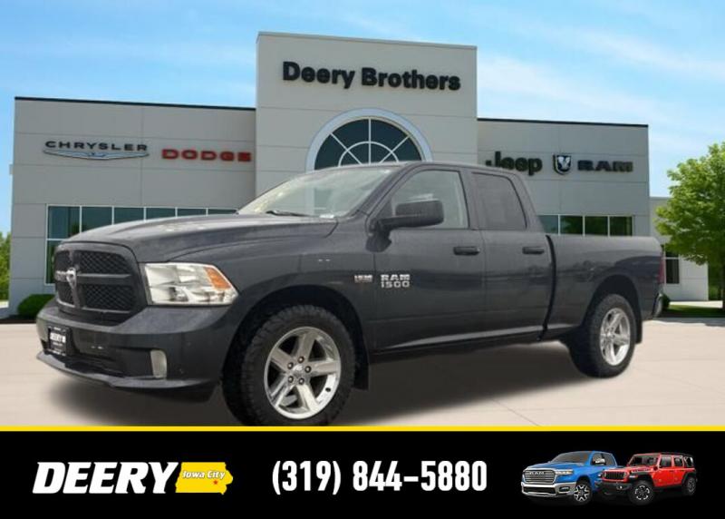 This Local Trade In has Super Low Miles for it's age! It is a One Owner Carfax and is Deery Certified! It was traded in for a Deery Certified Ram 1500 Rebel! Deery Certified, Local Trade In, One Owner Carfax, 20' x 8.0' Aluminum Wheels, 40/20/40 Split Bench Seat, 5.0' Touch Screen Display, Add Class IV Receiver Hitch, Body Color Front Fascia, Body Color Grille, Body Color Rear Bumper w/Step Pads, Charge Only Remote USB Port, Cloth 40/20/40 Bench Seat, Delete Spray In Bedliner, Fog Lamps, Front Armrest w/Three Cupholders, Integrated Voice Command w/Bluetooth, Media Hub (USB, AUX), Overhead Console, ParkView Rear Back-Up Camera, Popular Equipment Group, Quick Order Package 26C Express, Radio: Uconnect 5.0 AM/FM/BT, Rear Folding Seat, Rear View Auto Dim Mirror w/Display, Rear View Mirror w/Microphone, Remote Keyless Entry w/All-Secure, SIRIUSXM Satellite Radio, Temperature Compass Gauge, Uconnect Voice Command w/Bluetooth. The Deery discount that you see includes a Dealer Trade In Assistance Bonus discount of $1,000. Trade in must be 2008 or newer with less than 200,000 miles, and have a clean title. CARFAX One-Owner. Certified. Odometer is 69343 miles below market average! Recent Arrival! Maximum Steel Metallic Clearcoat 2014 Ram 1500 Express 4D Quad Cab HEMI 5.7L V8 Multi Displacement VVT 15/21 City/Highway MPG 8-Speed Automatic 4WD Certification Program Details: DEERY CERTIFIED PRE-OWNED DETAILS: - $0 Deductible - 3 Months or 3,000 Miles (whichever comes first ) - Systems Covered: Gasoline/ Diesel Engine , Transmission , Drive Axle, Hybrid Components , Filters, Lubricants Taxes and Seals and Gaskets ** See Dealer for More Information. Serving Iowa City, Cedar Rapids, Waterloo, North Liberty, Davenport, Muscatine, Quad Cities, Des Moines, Keokuk, Mount Pleasant, Washington, and Dubuque. Don't miss out! Give us a call at [phone] to confirm availability and schedule a test-drive.