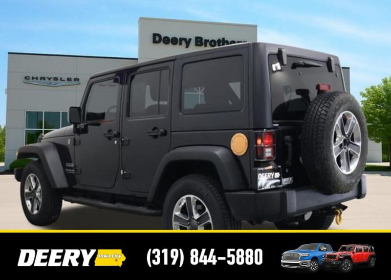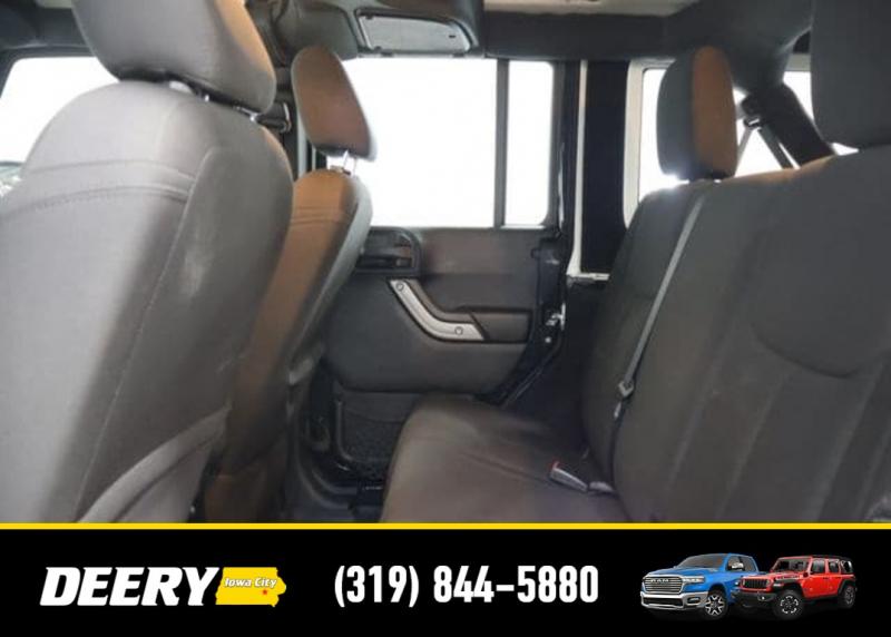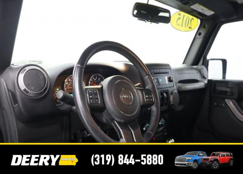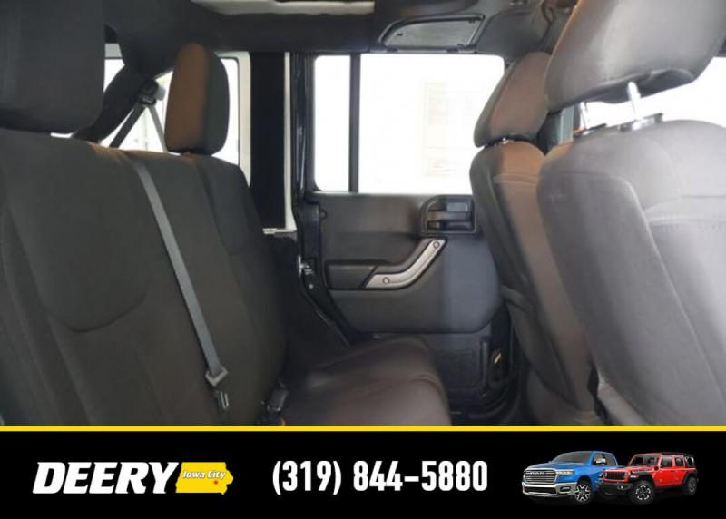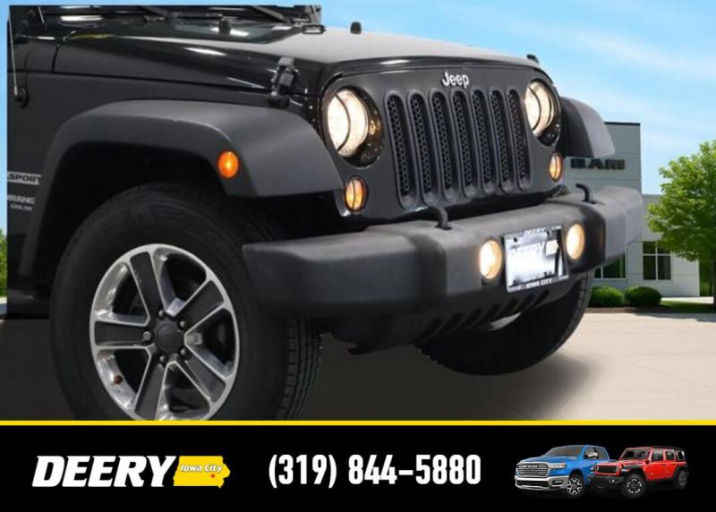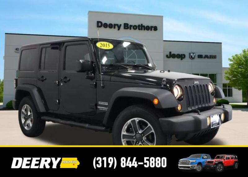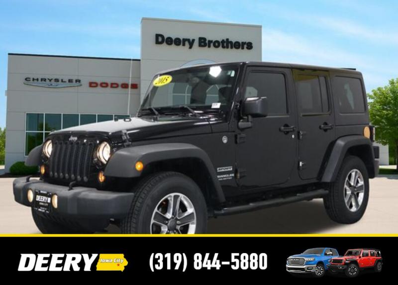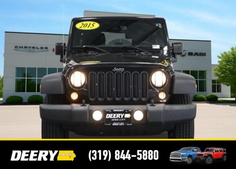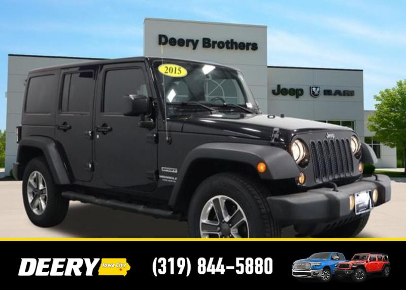 This Local Trade In was traded in for a brand new Jeep Gladiator and is Deery Certified! Local Trade In, Deery Certified, 17' x 7.5' Aluminum Wheels, Auto-Dimming Mirror w/Reading Lamp, Black 3-Piece Hard Top, Chrome/Leather Wrapped Shift Knob, Class II Receiver Hitch, Connectivity Group, Deep Tint Sunscreen Windows, Freedom Panel Storage Bag, Leather Wrapped Steering Wheel, Power Locks, Quick Order Package 24S, Radio: Uconnect 130 AM/FM/CD/MP3, Rear Window Defroster, Rear Window Wiper/Washer, SIRIUS Satellite Radio, Tinted Rear Quarter Liftgate Windows, Tire Pressure Monitoring Display, Trailer Tow Group, Trailer Tow w/4-Pin Connector Wiring, Uconnect Voice Command w/Bluetooth, Vehicle Information Center. The Deery discount that you see includes a Dealer Trade In Assistance Bonus discount of $1,000. Trade in must be 2008 or newer with less than 200,000 miles, and have a clean title. Certified. Recent Arrival! Black Clearcoat 2015 Jeep Wrangler Unlimited Sport 4D Sport Utility 3.6L V6 24V VVT 16/20 City/Highway MPG 5-Speed Automatic 4WD Certification Program Details: DEERY CERTIFIED PRE-OWNED DETAILS: - $0 Deductible - 3 Months or 3,000 Miles (whichever comes first ) - Systems Covered: Gasoline/ Diesel Engine , Transmission , Drive Axle, Hybrid Components , Filters, Lubricants Taxes and Seals and Gaskets ** See Dealer for More Information. Serving Iowa City, Cedar Rapids, Waterloo, North Liberty, Davenport, Muscatine, Quad Cities, Des Moines, Keokuk, Mount Pleasant, Washington, and Dubuque. Don't miss out! Give us a call at [phone] to confirm availability and schedule a test-drive.