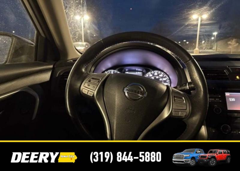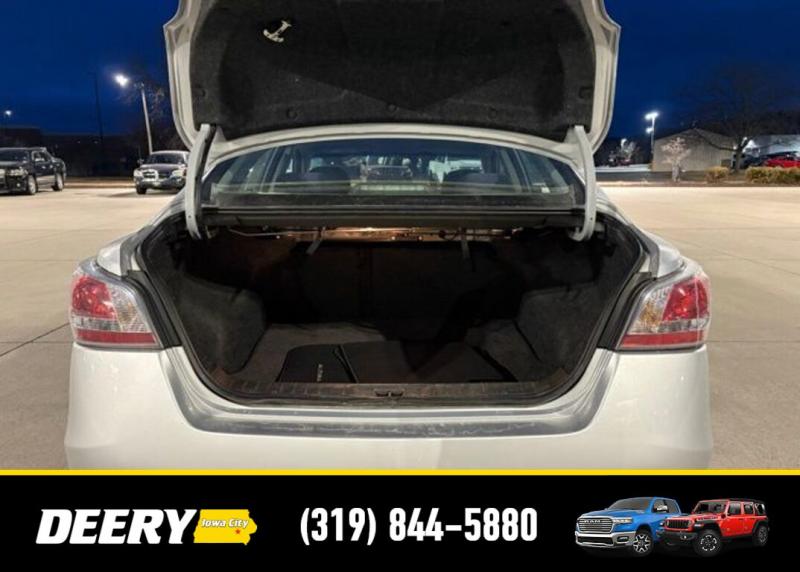 This Local Trade In was traded in for a brand new Jeep Wrangler! It is priced As Is No Warranty due to the age, mileage, interior/exterior cosmetic condition! ** Local Trade In, ** As Is No Warranty, Air Conditioning, Automatic temperature control, Exterior Parking Camera Rear, Front Bucket Seats, Power door mirrors, Power driver seat, Power windows, Radio: AM/FM/CD/MP3 Audio System w/SiriusXM, Remote keyless entry, Steering wheel mounted audio controls. Recent Arrival! Brilliant Silver Metallic 2015 Nissan Altima 2.5 SV 4D Sedan 2.5L I4 DOHC 16V 27/38 City/Highway MPG CVT with Xtronic FWD Awards: * 2015 [url] 10 Best Sedans Under $25,000 * 2015 [url] 10 Best UberX Candidates * 2015 [url] 10 Most Comfortable Cars Under $30,000 * 2015 [url] Best Buy Awards Finalist Serving Iowa City, Cedar Rapids, Waterloo, North Liberty, Davenport, Muscatine, Quad Cities, Des Moines, Keokuk, Mount Pleasant, Washington, and Dubuque. Don't miss out! Give us a call at [phone] to confirm availability and schedule a test-drive.