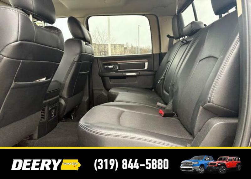 This Local Trade In was traded in for a brand new RAM 1500! It is priced As Is No Warranty due to the age and mileage! ** Local Trade In, ** As Is No Warranty, 115V Auxiliary Power Outlet, 20' x 9' Chrome Clad Aluminum Wheels, 8.4' Touchscreen Display, Anti-Spin Differential Rear Axle, Bucket Seats, Folding Flat Load Floor Storage, Full Length Upgraded Floor Console, Heated Front Rear Seats, Heated Second Row Seats, Heated Steering Wheel, High Back Seats, Leather Trimmed Bucket Seats, Memory seat, ParkView Rear Back-Up Camera, Pedal memory, Power 10-Way Memory Driver 6-Way Passenger Seats, Quick Order Package 26H Laramie, Radio: Uconnect 3C w/8.4' Display, Rear 60/40 Split Folding Seat, Remote Start System, Ventilated Front Seats. As Is - No Warranty. Recent Arrival! Brilliant Black Crystal Pearlcoat 2017 Ram 1500 Laramie 4D Crew Cab HEMI 5.7L V8 Multi Displacement VVT 15/21 City/Highway MPG 8-Speed Automatic 4WD Reviews: * Smooth-riding suspension provides plenty of comfort excellent trio of engine choices smooth and efficient eight-speed automatic transmission Rebel 1500 off-road package offers extra capability cabin is quiet and attractive touchscreen interface is easy to use. Source: Edmunds Serving Iowa City, Cedar Rapids, Waterloo, North Liberty, Davenport, Muscatine, Quad Cities, Des Moines, Keokuk, Mount Pleasant, Washington, and Dubuque. Don't miss out! Give us a call at [phone] to confirm availability and schedule a test-drive.