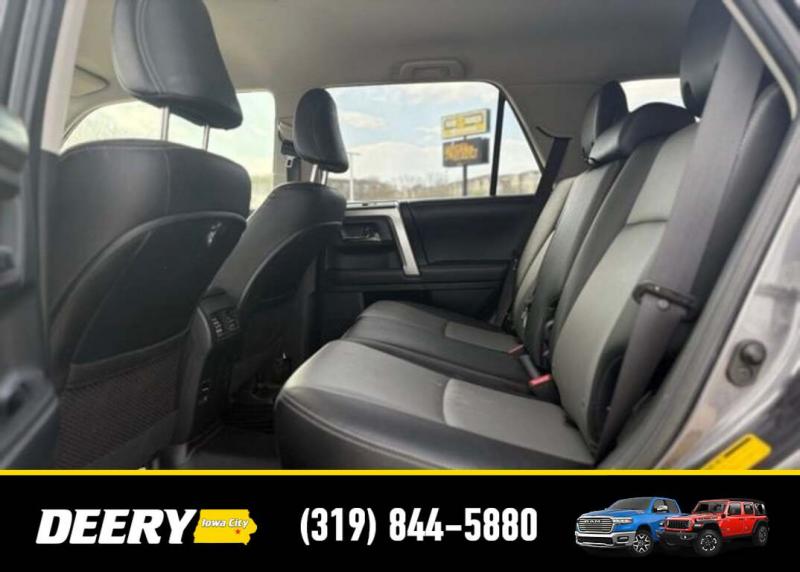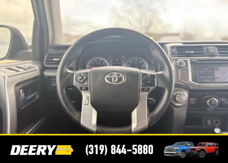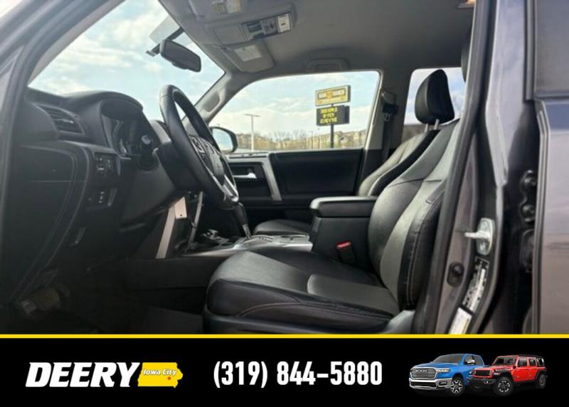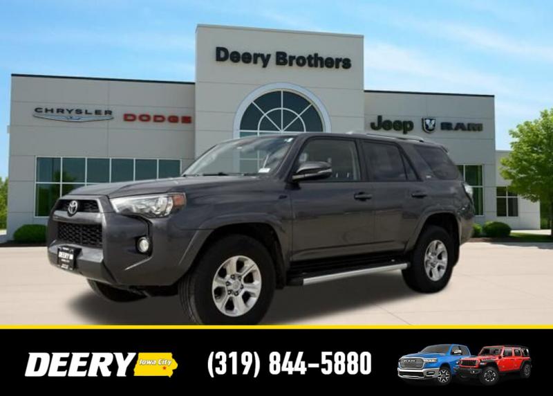 This Local Trade in has a Clean Carfax and is Deery Certified! It was traded in for a Deery Certified Toyota Tundra! Local Trade In, Deery Certified, Clean Carfax, 17' x 7.0' 6-Spoke Alloy Wheels, Auto-Dimming Rear-View Mirror, Body Color Heated Mirrors, Exterior Parking Camera Rear, Garage Door Opener, Heated front seats, Moonroof w/Tilt Up Slide, Navigation System, Power driver seat, Radio: Entune Premium Audio w/Navigation, Softex Synthetic Leather Seat Trim, SR5 Premium Package w/Softex. The Deery discount that you see includes a Dealer Trade In Assistance Bonus discount of $1,000. Trade in must be 2008 or newer with less than 200,000 miles, and have a clean title. Clean CARFAX. Certified. Recent Arrival! Magnetic Gray Metallic 2018 Toyota 4Runner SR5 Premium 4D Sport Utility 4.0L V6 SMPI DOHC 17/20 City/Highway MPG 5-Speed Automatic with Overdrive 4WD Certification Program Details: DEERY CERTIFIED PRE-OWNED DETAILS: - $0 Deductible - 3 Months or 3,000 Miles (whichever comes first ) - Systems Covered: Gasoline/ Diesel Engine , Transmission , Drive Axle, Hybrid Components , Filters, Lubricants Taxes and Seals and Gaskets ** See Dealer for More Information. Awards: * 2018 [url] Best Resale Value Awards * 2018 [url] 10 Most Awarded Brands Serving Iowa City, Cedar Rapids, Waterloo, North Liberty, Davenport, Muscatine, Quad Cities, Des Moines, Keokuk, Mount Pleasant, Washington, and Dubuque. Don't miss out! Give us a call at [phone] to confirm availability and schedule a test-drive.