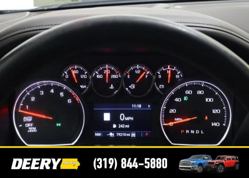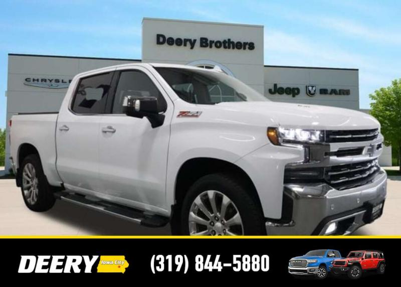 This Local Trade In is a One Owner Clean CARFAX that is Deery Certified! It was traded in for a brand new RAM 1500! ** Deery Certified, ** One Owner CARFAX, ** Clean CARFAX, ** Local Trade In, 10-Way Power Driver Seat w/Lumbar, 10-Way Power Passenger Seat Adjuster w/Lumbar, 12-Volt Rear Auxiliary Power Outlet, 120-Volt Bed Mounted Power Outlet, 120-Volt Instrument Panel Power Outlet, 2 USB Ports (First Row), 2nd Row Heated Outboard Seats, 4.2' Diagonal Color Display Driver Info Center, 4G LTE Wi-Fi Hot Spot Capable, 6-Speaker Audio System, Adaptive Cruise Control - Camera, Advanced Trailering System, All-Weather Floor Liner (LPO) (AAK), Apple CarPlay/Android Auto, Auto-Dimming Inside Rear-View Mirror, Auto-dimming Rear-View mirror, Automatic Emergency Braking, Auxiliary External Transmission Oil Cooler, Bluetooth For Phone, Brake assist, Chevrolet Connected Access Capable, Chevytec Spray-On Black Bedliner, Chrome Grille, Chrome Mirror Caps, Color-Keyed Carpeting Floor Covering, Compass, Deep-Tinted Glass, Driver Memory, Electric Rear-Window Defogger, Electrical Lock Control Steering Column, EZ Lift Power Lock Release Tailgate, Floor Mounted Center Console, Following Distance Indicator, Forward Collision Alert, Front Bucket Seats, Front Frame-Mounted Black Recovery Hooks, Front LED Fog Lamps, Front Pedestrian Braking, HD Radio, HD Rear Vision Camera, Heated Driver Front Outboard Passenger Seats, Heated Steering Wheel, Heavy Duty Suspension, Heavy-Duty Rear Locking Differential, Hill Descent Control, Hitch Guidance, Hitch Guidance w/Hitch View, Integrated Trailer Brake Controller, IntelliBeam Automatic High Beam On/Off, Keyless Open Start, Lane Change Alert w/Side Blind Zone Alert, Lane Keep Assist w/Lane Departure Warning, Leather Wrapped Steering Wheel, LED Cargo Area Lighting, LTZ Convenience Package, LTZ Convenience Package II, LTZ Premium Package, Manual Tilt/Telescoping Steering Column, Memory seat, Off-Road Suspension, OnStar Chevrolet Connected Services Capable, Outside Heated Power-Adjustable Mirrors, Perforated Leather-Appointed Front Seat Trim, Perimeter Lighting, Power Door Locks, Power driver seat, Power Sliding Rear Window w/Rear Defogger, Power Sunroof, Power Tailgate, Preferred Equipment Group 1LZ, Premium Bose 7-Speaker Sound System, Radio: Chevrolet Infotainment 3 Premium System, Rear Cross Traffic Alert, Rear Dual USB Charging-Only Ports, Rear Rubberized-Vinyl Floor Mats, Rear Wheelhouse Liners, Remote Vehicle Starter System, Safety Alert Seat, Safety Package, Safety Package II, Steering Wheel Audio Controls, Steering Wheel Mounted Electronic Cruise Control, Trailering Package, Ultrasonic Front Rear Park Assist, Universal Home Remote, Up-Level Rear Seat w/Storage Package, Ventilated Driver Front Passenger Seats, Wheels: 20' x 9' Polished Finish, Wireless Charging, Z71 Off-Road Protection Package, Z71 Off-Road Package. The Deery discount that you see includes a Dealer Trade In Assistance Bonus discount of $1,000. Trade in must be 2008 or newer with less than 200,000 miles, and have a clean title. Clean CARFAX. CARFAX One-Owner. Certified. Odometer is 2384 miles below market average! Summit White 2020 Chevrolet Silverado 1500 LTZ 4D Crew Cab EcoTec3 6.2L V8 15/19 City/Highway MPG 10-Speed Automatic 4WD Certification Program Details: DEERY CERTIFIED PRE-OWNED DETAILS: - $0 Deductible - 3 Months or 3,000 Miles (whichever comes first ) - Systems Covered: Gasoline/ Diesel Engine , Transmission , Drive Axle, Hybrid Components , Filters, Lubricants Taxes and Seals and Gaskets ** See Dealer for More Information. Serving Iowa City, Cedar Rapids, Waterloo, North Liberty, Davenport, Muscatine, Quad Cities, Des Moines, Keokuk, Mount Pleasant, Washington, and Dubuque. Don't miss out! Give us a call at [phone] to confirm availability and schedule a test-drive.