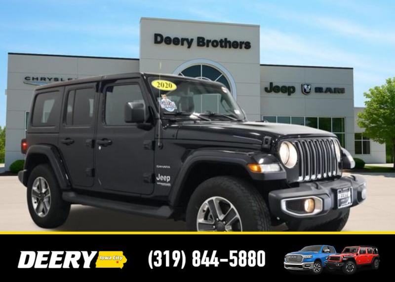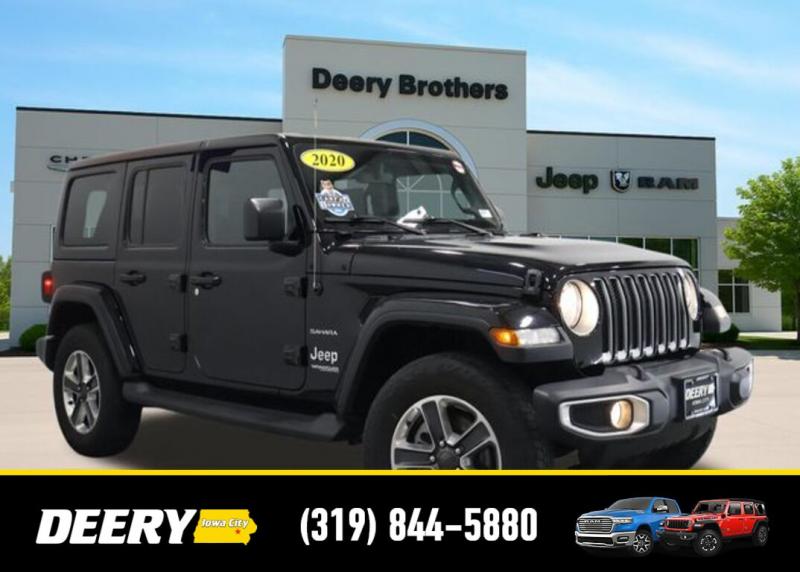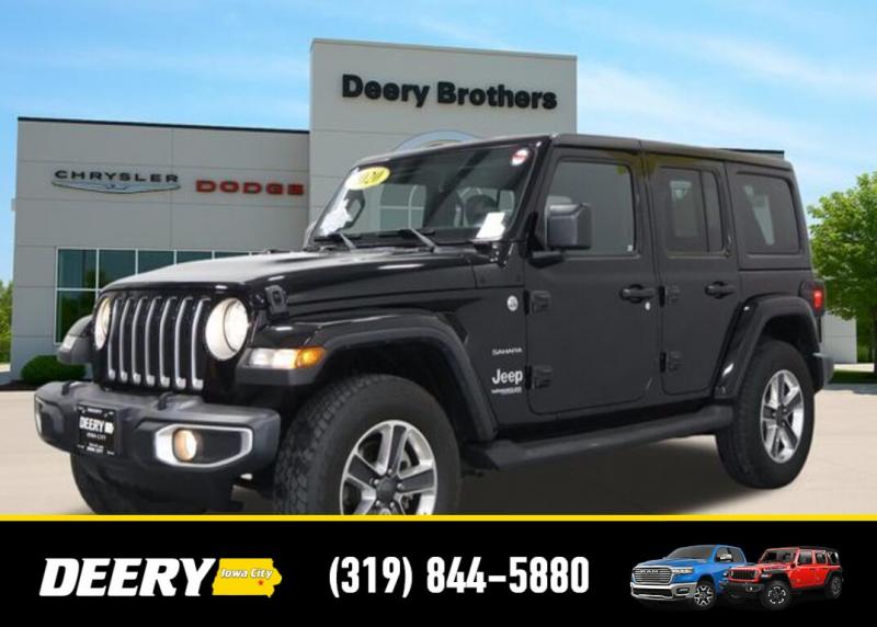 This Super Low Mileage Local Purchase is a One Owner Clean CARFAX that is Deery Certified! Don't miss out on this one! ** Local Purchase, ** Clean CARFAX, ** One Owner CARFAX, ** Deery Certified, 240 Amp Alternator, 4G LTE Wi-Fi Hot Spot, 7 4 Pin Wiring Harness, 700 Amp Maintenance Free Battery, 8.4' Radio Premium Audio Group, 8.4' Touchscreen Display, Alpine Premium Audio System, Apple CarPlay/Android Auto, Auto-Dimming Rear-View Mirror, Auxiliary Switches, Black 3-Piece Hard Top, Class II Receiver Hitch, Cloth Low-Back Bucket Seats, Cold Weather Group, GPS Navigation, HD Radio, Heated Front Rear Seats, Heated Steering Wheel, No Soft Top, ParkView Rear Back-Up Camera, Quick Order Package 28G, Radio: Uconnect 4C Nav w/8.4' Display, Rear Window Defroster, Rear Window Wiper/Washer, Remote Start System, Trailer Tow HD Electrical Group, Wheels: 18' x 7.5' Polished w/Gray Spokes. The Deery discount that you see includes a Dealer Trade In Assistance Bonus discount of $1,000. Trade in must be 2008 or newer with less than 200,000 miles, and have a clean title. Clean CARFAX. CARFAX One-Owner. Certified. Odometer is 44026 miles below market average! Recent Arrival! Black Clearcoat 2020 Jeep Wrangler Unlimited Sahara 4D Sport Utility 2.0L I4 DOHC 21/22 City/Highway MPG 8-Speed Automatic 4WD Certification Program Details: DEERY CERTIFIED PRE-OWNED DETAILS: - $0 Deductible - 3 Months or 3,000 Miles (whichever comes first ) - Systems Covered: Gasoline/ Diesel Engine , Transmission , Drive Axle, Hybrid Components , Filters, Lubricants Taxes and Seals and Gaskets ** See Dealer for More Information. Serving Iowa City, Cedar Rapids, Waterloo, North Liberty, Davenport, Muscatine, Quad Cities, Des Moines, Keokuk, Mount Pleasant, Washington, and Dubuque. Don't miss out! Give us a call at [phone] to confirm availability and schedule a test-drive.