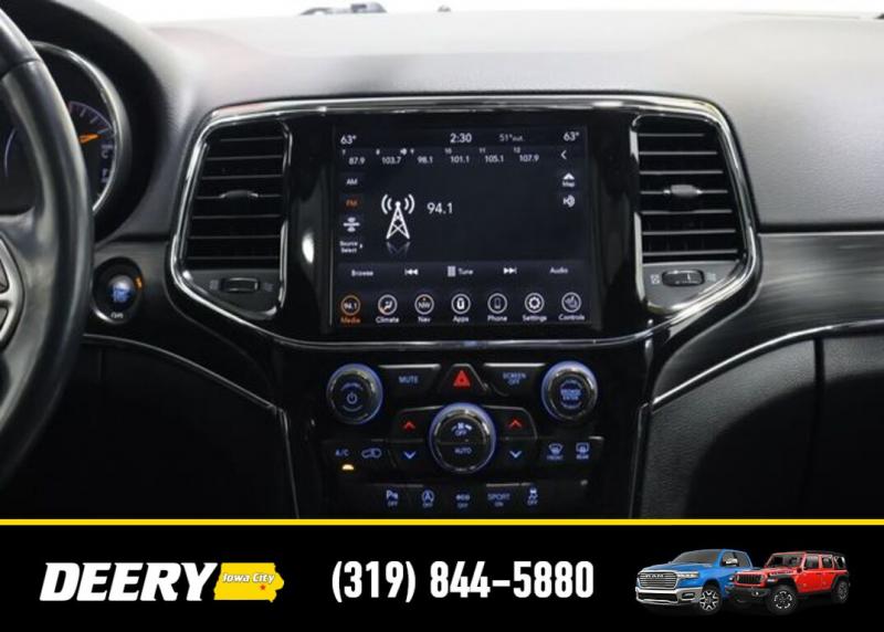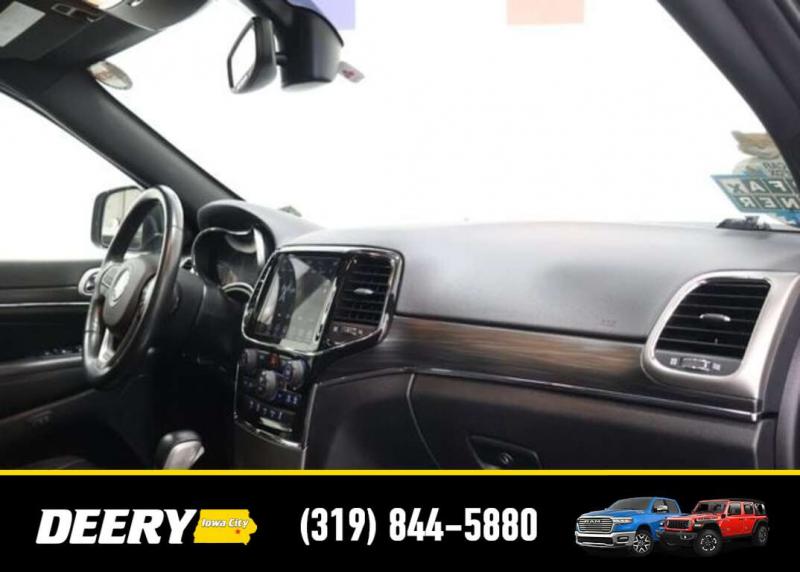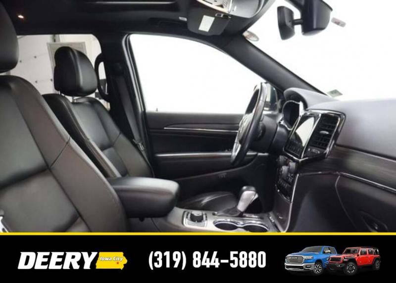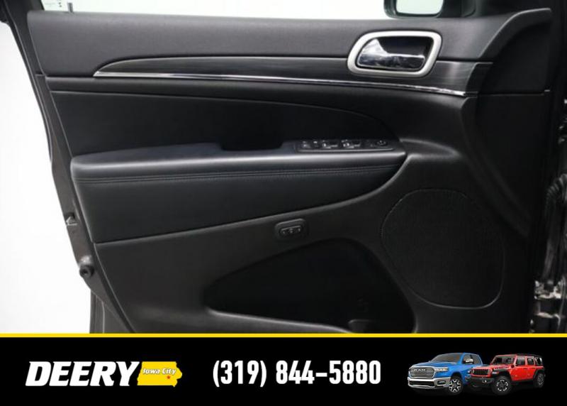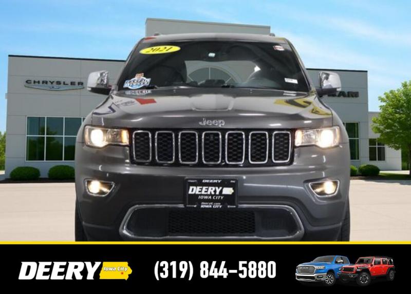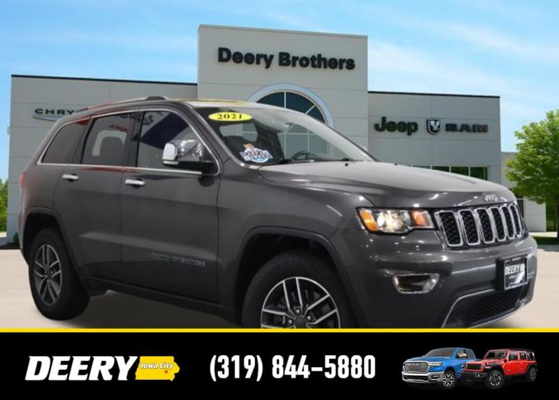 This Local Trade In is a One Owner Carfax that was purchased here brand new! It is Deery Certified and was traded in for a brand new Jeep Grand Cherokee! Local Trade In, Deery Certified, One Owner Carfax, Blind-Spot and Cross Path Detection, Parksense Rear Pasrk-Assist with Stop, 7 4 Pin Wiring Harness, 8.4' Touchscreen Display, Apple CarPlay, Class IV Receiver Hitch, Google Android Auto, GPS Antenna Input, GPS Navigation, HD Radio, Heated front seats, Heated steering wheel, Heavy-Duty Engine Cooling, Integrated Voice Command w/Bluetooth, Leather Trimmed Bucket Seats, Memory seat, ParkView Rear Back-Up Camera, Power driver seat, Power Liftgate, Power moonroof, Power passenger seat, Quick Order Package 2BH, Radio: Uconnect 4C Nav w/8.4' Display, Rear Load Leveling Suspension, SiriusXM Satellite Radio, SiriusXM Traffic Plus, SiriusXM Travel Link, Trailer Tow Group IV, Wheels: 18' x 8.0' Tech Gray Diamond Cut. The Deery discount that you see includes a Dealer Trade In Assistance Bonus discount of $1,000. Trade in must be 2008 or newer with less than 200,000 miles, and have a clean title. CARFAX One-Owner. Certified. Recent Arrival! Granite Crystal Metallic Clearcoat 2021 Jeep Grand Cherokee Limited 4D Sport Utility 3.6L V6 24V VVT 18/25 City/Highway MPG 8-Speed Automatic 4WD Certification Program Details: DEERY CERTIFIED PRE-OWNED DETAILS: - $0 Deductible - 3 Months or 3,000 Miles (whichever comes first ) - Systems Covered: Gasoline/ Diesel Engine , Transmission , Drive Axle, Hybrid Components , Filters, Lubricants Taxes and Seals and Gaskets ** See Dealer for More Information. Serving Iowa City, Cedar Rapids, Waterloo, North Liberty, Davenport, Muscatine, Quad Cities, Des Moines, Keokuk, Mount Pleasant, Washington, and Dubuque. Don't miss out! Give us a call at [phone] to confirm availability and schedule a test-drive.