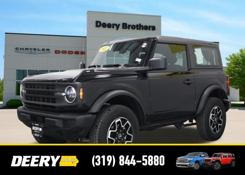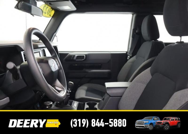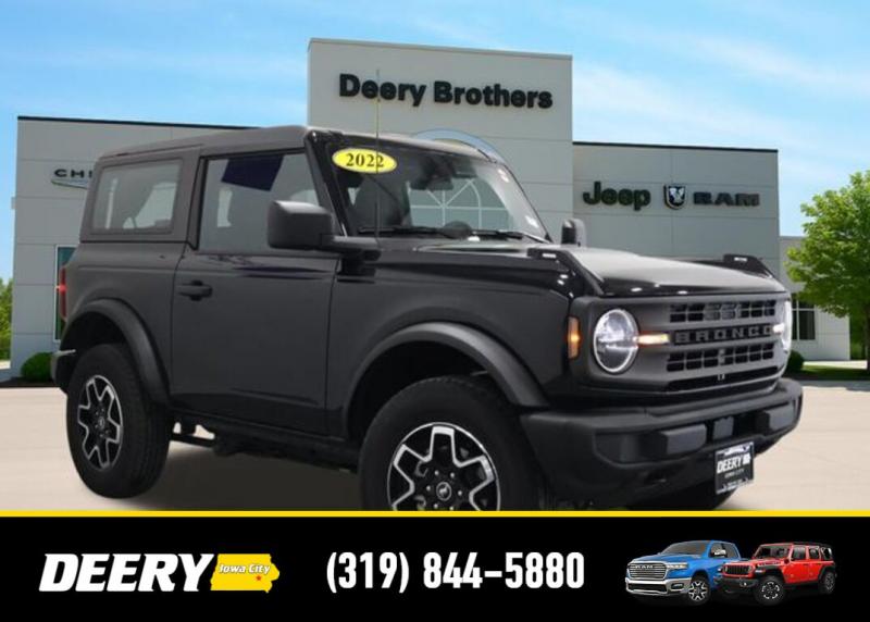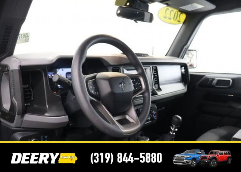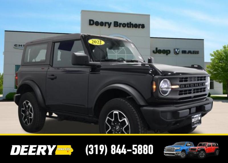 This Local Trade In has a Clean Carfax and is Deery Certified! It was traded in for a brand new Jeep Grand Cherokee! ** Local Trade In, ** Clean Carfax, ** Deery Certified, ** 7-Speed Manual Transmission, 18' Bright Machined Aluminum Wheels, Air Conditioning, Auto High-beam Headlights, Convertible HardTop, Equipment Group 101A Standard Package, Front Bucket Seats, Power door mirrors, Power steering, Power windows, Remote keyless entry, Steering wheel mounted audio controls. The Deery discount that you see includes a Dealer Trade In Assistance Bonus discount of $1,000. Trade in must be 2008 or newer with less than 200,000 miles, and have a clean title. Certified. Odometer is 13048 miles below market average! Recent Arrival! Shadow Black 2022 Ford Bronco 2D Sport Utility 2.3L EcoBoost I-4 20/21 City/Highway MPG 7-Speed Manual 4WD Certification Program Details: DEERY CERTIFIED PRE-OWNED DETAILS: - $0 Deductible - 3 Months or 3,000 Miles (whichever comes first ) - Systems Covered: Gasoline/ Diesel Engine , Transmission , Drive Axle, Hybrid Components , Filters, Lubricants Taxes and Seals and Gaskets ** See Dealer for More Information. Awards: * NACTOY 2022 North American Utility of the Year Serving Iowa City, Cedar Rapids, Waterloo, North Liberty, Davenport, Muscatine, Quad Cities, Des Moines, Keokuk, Mount Pleasant, Washington, and Dubuque. Don't miss out! Give us a call at [phone] to confirm availability and schedule a test-drive.