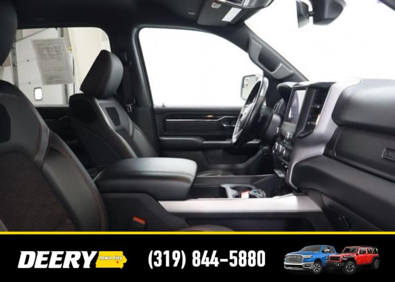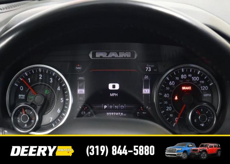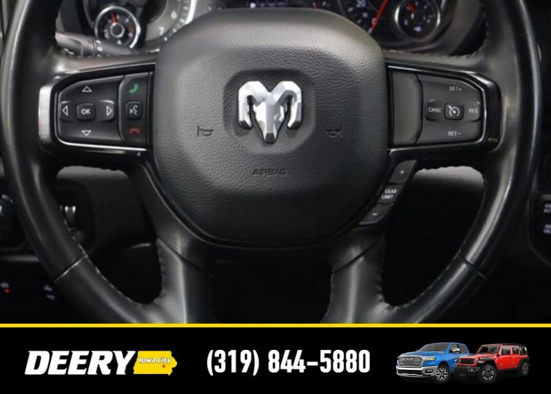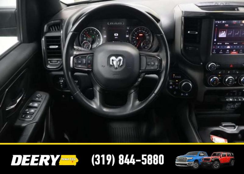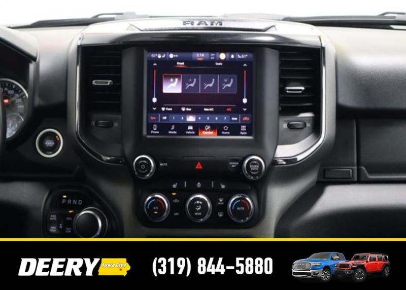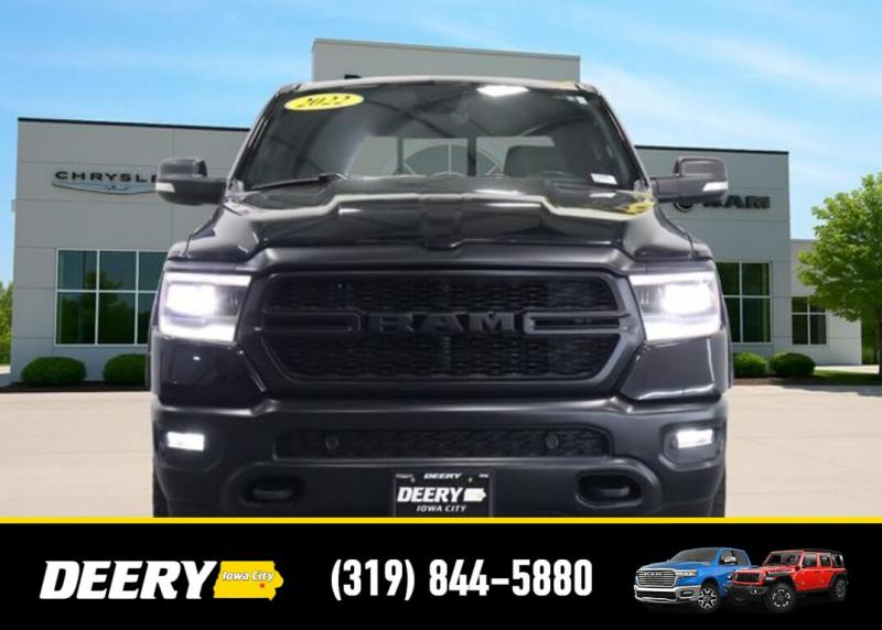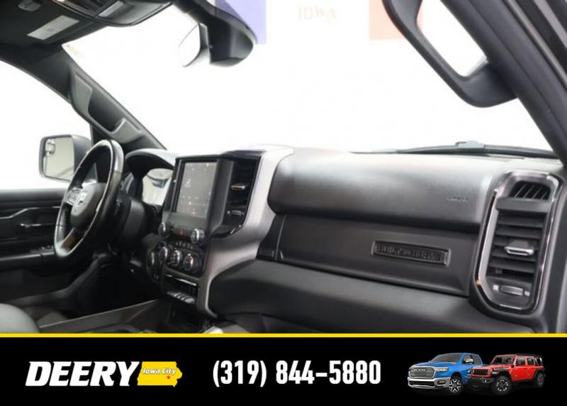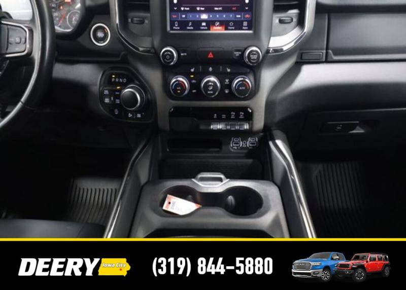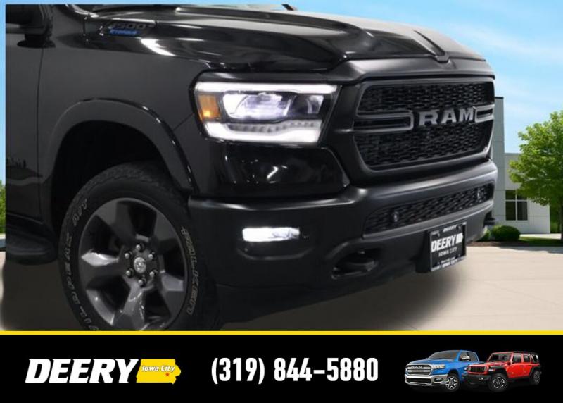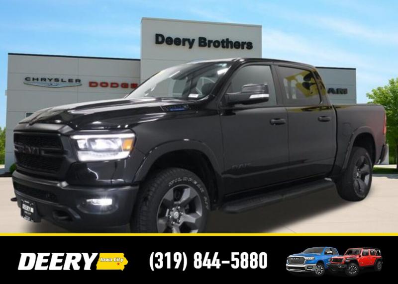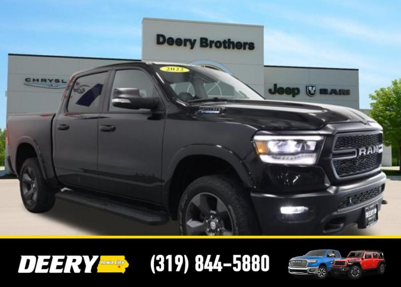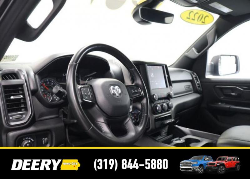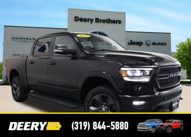This Local Trade In is Deery Certified and was traded in for a RAM HD! Don't miss out on this Built to Serve Special Edition it won't last long! Local Trade In, Deery Certified, 115V Auxiliary Power Outlet, 115V Auxiliary Rear Power Outlet, 20' x 9' Aluminum Wheels, 2nd Row In Floor Storage Bins, 3 Rear Seat Head Restraints, 4 Way Front Headrests, 400W Inverter, 4G LTE Wi-Fi Hot Spot, 8.4' Touchscreen Display, 9 Amplified Speakers w/Subwoofer, Air Conditioning ATC w/Dual Zone Control, Apple CarPlay, Auto-Dimming Exterior Driver Mirror, Auto-Dimming Rear-View Mirror, Big Horn Badge, Big Horn Level 2 Equipment Group, Black Door Handles, Black Exterior Mirrors, Black Exterior Truck Badging, Black Front Bumper, Black Headlamp Bezels, Black Onyx Interior Accent, Black Premium Power Mirrors, Black Rear Bumper, Bluetooth Handsfree Phone Audio, Body Color Fender Flares, Bucket Seats, Built-To-Serve Edition, Built-To-Serve Edition I/P Badge, Center Console Parts Module, Class IV Receiver Hitch, Cluster 7.0' TFT Color Display, Connectivity - US/Canada, Convex Wide-Angle Mirror Insert, Delete LED Lamp - Floor Console Bin, Dual Exhaust w/Black Tips, E-Locker Rear Axle, Exterior Mirrors Courtesy Lamps, Exterior Mirrors w/Heating Element, Exterior Mirrors w/Supplemental Signals, Falken Brand Tires, For Details, Visit [url] Front Extra HD Shock Absorbers, Front LED Fog Lamps, Front Seat Back Map Pockets, Full Length Floor Console, Global Telematics Box Module (TBM), Glove Box Lamp, Google Android Auto, GPS Antenna Input, Grille Surround 1 Black Texture 1 Black, Heated Front Rear Seats, Heated Steering Wheel, Hill Descent Control, Integrated Center Stack Radio, LED Reflector Headlamps, LED Taillamps, Manual Adjust 4-Way Front Passenger Seat, Media Hub w/2 Charge Only USBs, MOPAR Black Tubular Side Steps (DISC), MOPAR Front Rear Rubber Floor Mats, MOPAR Lockable Console Storage, ParkSense Front/Rear Park Assist w/Stop, Power 2-Way Driver Lumbar Adjust, Power 4-Way Driver Lumbar Adjust, Power 8-Way Driver Seat, Power Adjustable Pedals, Power-Folding Mirrors, Premium Cloth/Vinyl Bucket Seats, Quick Order Package 23Z Big Horn, Radio: Uconnect 5 W w/8.4' Display, Raised Ride Height, RAM Grille Badge - Black, Rear 60/40 Folding Seat, Rear Dome w/On/Off Switch Lamp, Rear Extra HD Shock Absorbers, Rear Power Sliding Window, Rear Window Defroster, Remote Start System, Security Alarm, SiriusXM Radio Service, SiriusXM Satellite Radio, Sun Visors w/Illuminated Vanity Mirrors, Tow Hooks, Universal Garage Door Opener, US Flag Decal, USB Host Flip. The Deery discount that you see includes a Dealer Trade In Assistance Bonus discount of $1,000. Trade in must be 2008 or newer with less than 200,000 miles, and have a clean title. Certified. Recent Arrival! Diamond Black Crystal Pearlcoat 2022 Ram 1500 Big Horn/Lone Star 4D Crew Cab 3.6L V6 24V VVT 19/24 City/Highway MPG 8-Speed Automatic 4WD Certification Program Details: DEERY CERTIFIED PRE-OWNED DETAILS: - $0 Deductible - 3 Months or 3,000 Miles (whichever comes first ) - Systems Covered: Gasoline/ Diesel Engine , Transmission , Drive Axle, Hybrid Components , Filters, Lubricants Taxes and Seals and Gaskets ** See Dealer for More Information. Serving Iowa City, Cedar Rapids, Waterloo, North Liberty, Davenport, Muscatine, Quad Cities, Des Moines, Keokuk, Mount Pleasant, Washington, and Dubuque. Don't miss out! Give us a call at [phone] to confirm availability and schedule a test-drive.