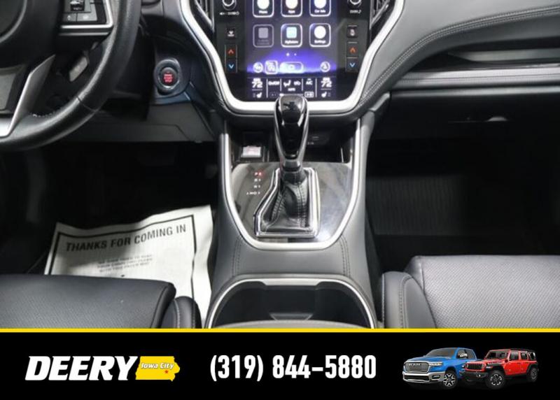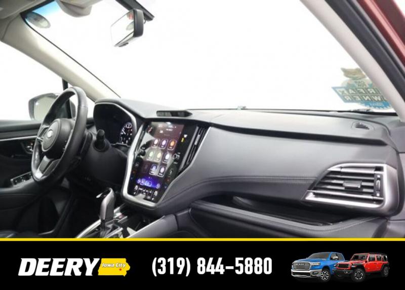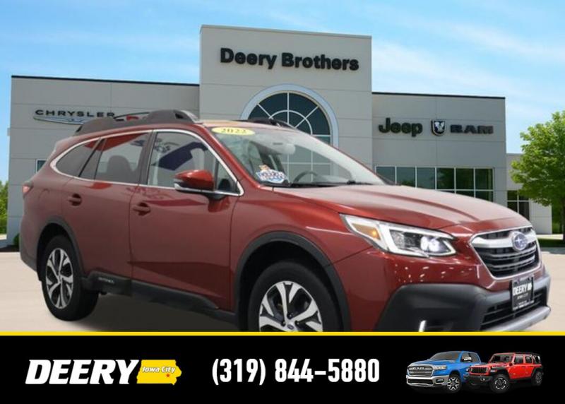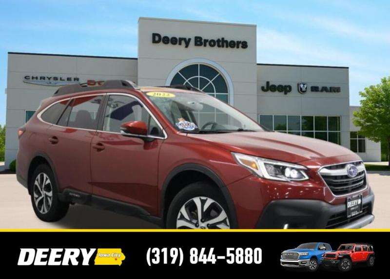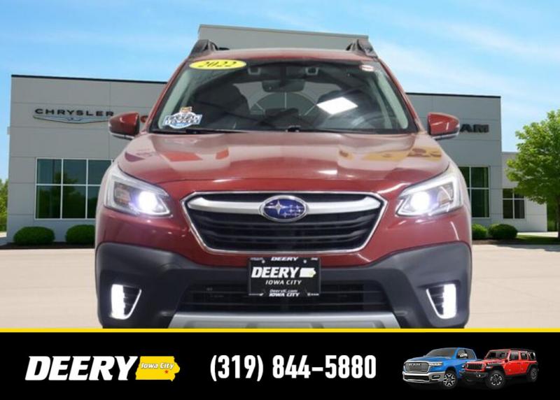 This Locally Owned 2022 Subaru Outback is a One Owner CARFAX that is Deery Certified! ** Adaptive Cruise Control, ** Automatic Emergency Braking, ** Backup Camera, ** Blind Spot Monitor, ** Cross Traffic Alert, ** Lane Departure Warning, ** Deery Certified, ** Local Purchase, ** One Owner CARFAX, Auto High-beam Headlights, Auto-Dimming Exterior Mirror w/Approach Light, Brake assist, Dome Light LED Upgrade, DriverFocus (Driver Monitoring System), harman/kardon Speakers, Heated Front Bucket Seats, Heated Steering Wheel, Memory seat, Perforated Leather-Trimmed Upholstery, Popular Package #2, Power driver seat, Power Liftgate, Power Moonroof, Power Moonroof HSW Navigation System, Radio: Subaru STARLINK 11.6' Multimedia Nav System, Rear Bumper Cover, Splash Guards, STARLINK/Apple CarPlay/Android Auto, Wheels: 18' x 7J Black Aluminum Alloy. The Deery discount that you see includes a Dealer Trade In Assistance Bonus discount of $1,000. Trade in must be 2008 or newer with less than 200,000 miles, and have a clean title. CARFAX One-Owner. Certified. Crimson Red Pearl 2022 Subaru Outback Limited 4D Sport Utility 2.5L 4-Cylinder DOHC 16V 26/33 City/Highway MPG CVT Lineartronic AWD Certification Program Details: DEERY CERTIFIED PRE-OWNED DETAILS: - $0 Deductible - 3 Months or 3,000 Miles (whichever comes first ) - Systems Covered: Gasoline/ Diesel Engine , Transmission , Drive Axle, Hybrid Components , Filters, Lubricants Taxes and Seals and Gaskets ** See Dealer for More Information. Serving Iowa City, Cedar Rapids, Waterloo, North Liberty, Davenport, Muscatine, Quad Cities, Des Moines, Keokuk, Mount Pleasant, Washington, and Dubuque. Don't miss out! Give us a call at [phone] to confirm availability and schedule a test-drive.