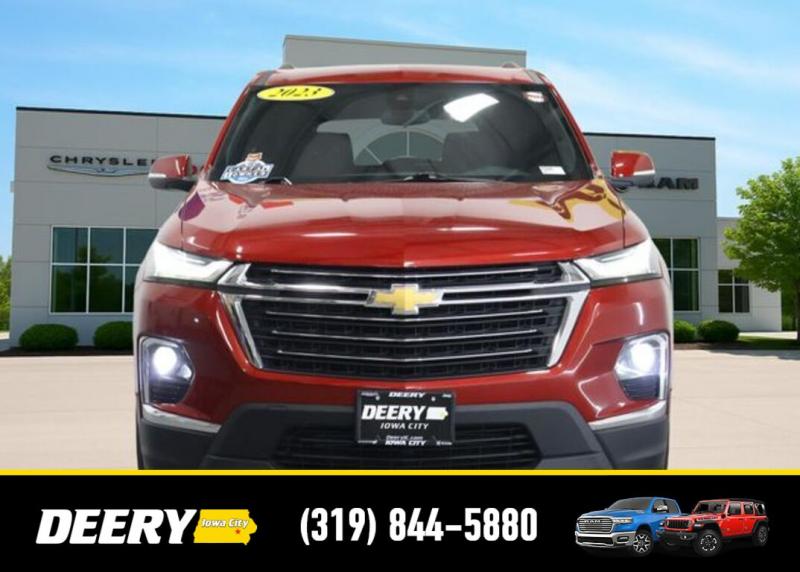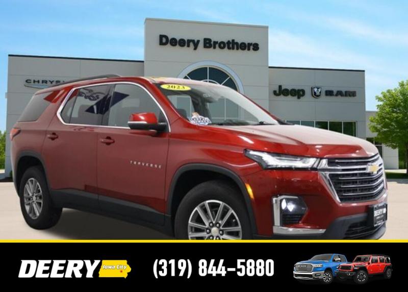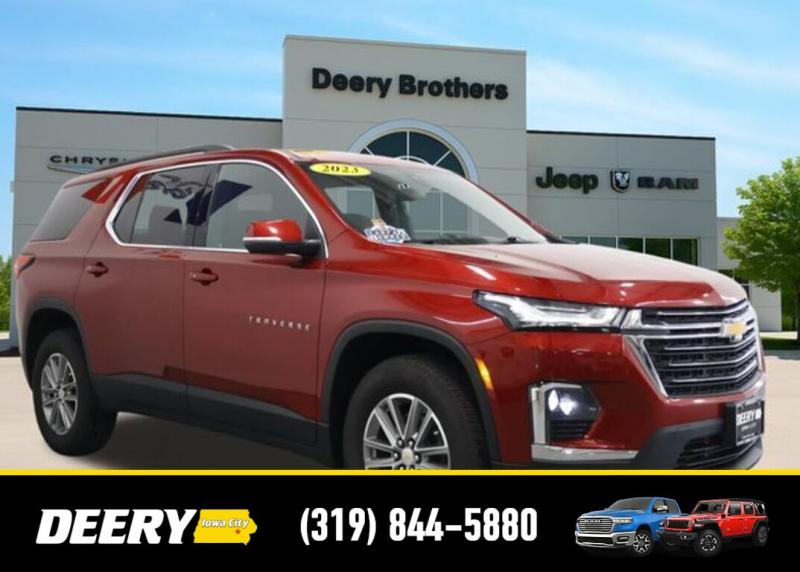 This Local Purchase is a One Owner Clean Carfax that is Deery Certified! Deery Certified, Local Purchase, One Owner Carfax, Clean Carfax, 3rd row seats: split-bench, 4.2' Multi-Color Enhanced Driver Instrument Display, Apple CarPlay/Android Auto, Auto High-beam Headlights, Convenience Driver Confidence Package, Exterior Parking Camera Rear, Heated Driver Front Passenger Seats, Power driver seat, Preferred Equipment Group 1LT, Radio: Chevrolet Infotainment 3 Plus System, Rear Power Liftgate, Remote Start, SiriusXM w/360L, Universal Home Remote, Wheels: 18' Bright Silver-Painted Aluminum. The Deery discount that you see includes a Dealer Trade In Assistance Bonus discount of $1,000. Trade in must be 2008 or newer with less than 200,000 miles, and have a clean title. Clean CARFAX. CARFAX One-Owner. Certified. Recent Arrival! Radiant Red Tintcoat 2023 Chevrolet Traverse LT 1LT 4D Sport Utility 3.6L V6 SIDI VVT 18/27 City/Highway MPG 9-Speed Automatic FWD Certification Program Details: DEERY CERTIFIED PRE-OWNED DETAILS: - $0 Deductible - 3 Months or 3,000 Miles (whichever comes first ) - Systems Covered: Gasoline/ Diesel Engine , Transmission , Drive Axle, Hybrid Components , Filters, Lubricants Taxes and Seals and Gaskets ** See Dealer for More Information. Serving Iowa City, Cedar Rapids, Waterloo, North Liberty, Davenport, Muscatine, Quad Cities, Des Moines, Keokuk, Mount Pleasant, Washington, and Dubuque. Don't miss out! Give us a call at [phone] to confirm availability and schedule a test-drive.