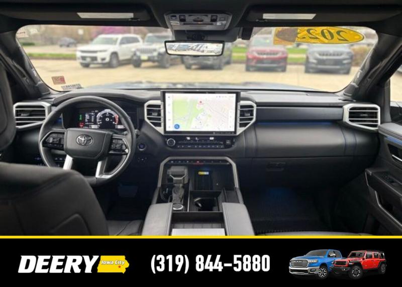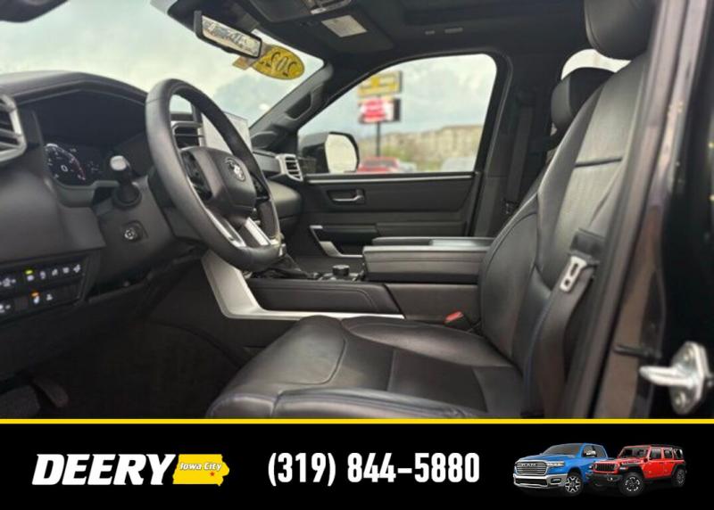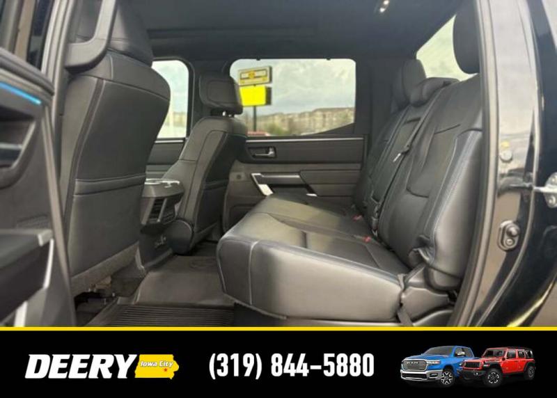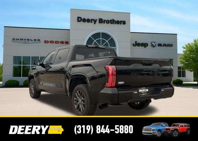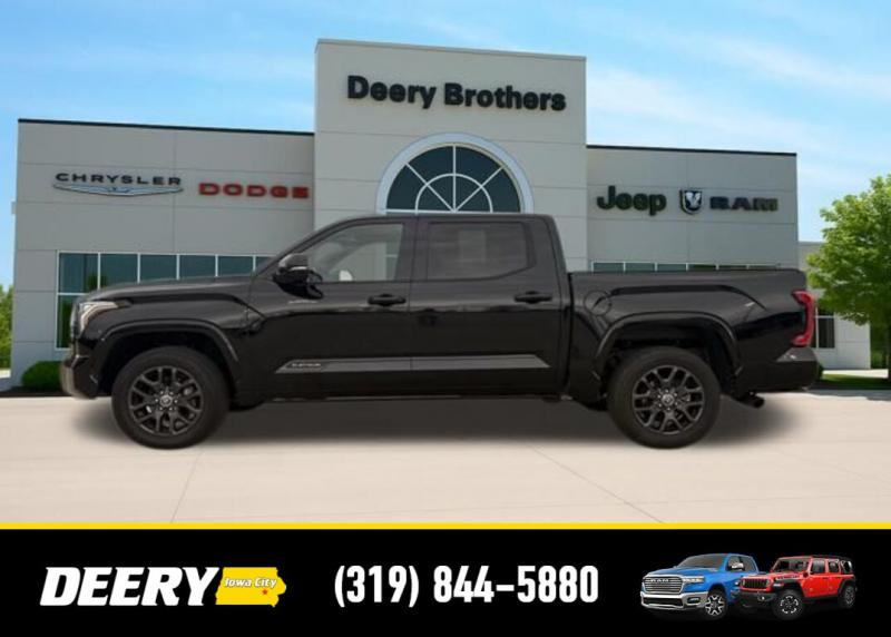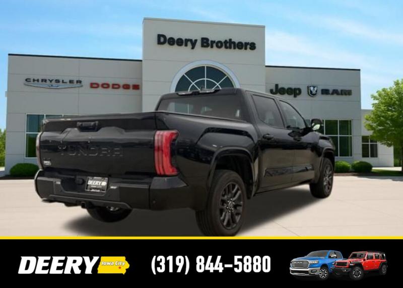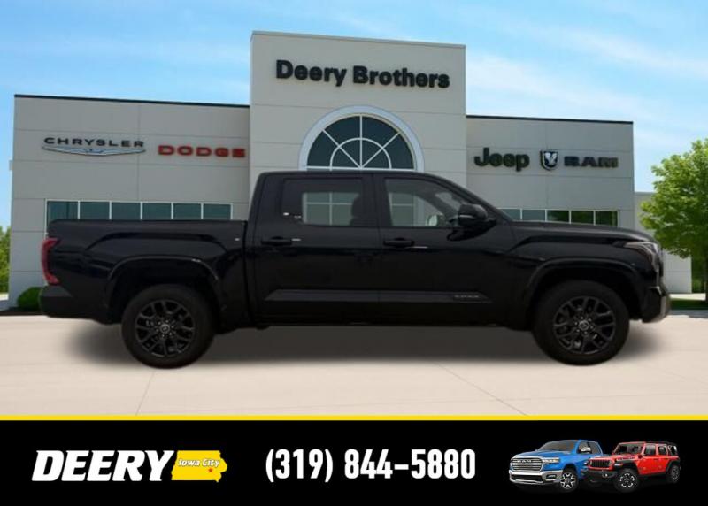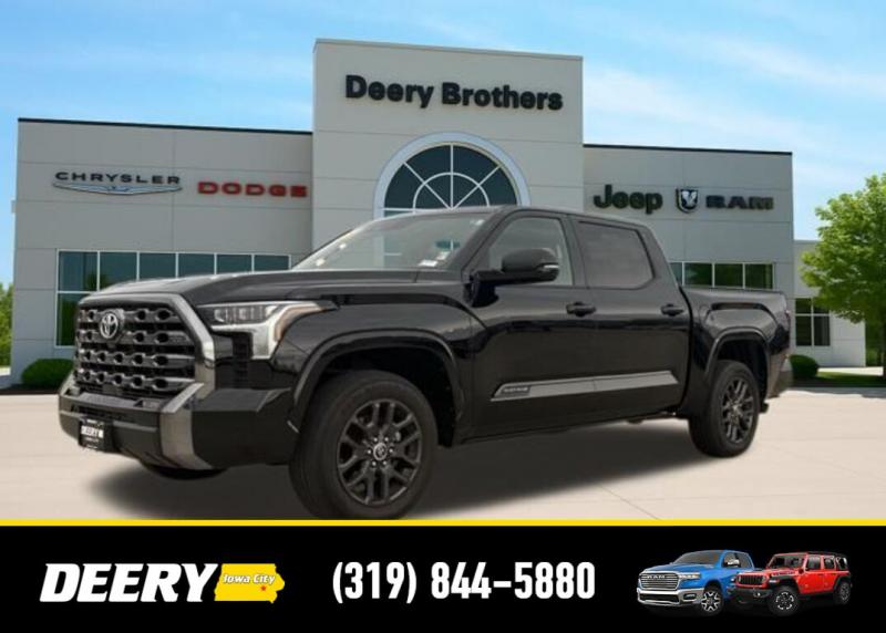 This Local Trade In is a One Owner Clean Carfax that is Deery Certified! It was traded in for a brand new Ram 1500! Deery Certified, Local Trade In, One Owner Carfax, Clean Carfax, 10-Way Pwr Adj Heated and Ventilated Front Seats, Apple CarPlay/Android Auto, Auto High-beam Headlights, Front Bucket Seats, Heated front seats, Leather Seat Trim, Memory seat, Navigation System, Power moonroof, Radio: Audio Multimedia System, Safety Connect, Ventilated front seats, Wheels: 20' Dark Painted Alloy. The Deery discount that you see includes a Dealer Trade In Assistance Bonus discount of $1,000. Trade in must be 2008 or newer with less than 200,000 miles, and have a clean title. CARFAX One-Owner. Certified. Recent Arrival! Midnight Black Metallic 2023 Toyota Tundra Platinum 4D CrewMax 3.4L V6 17/22 City/Highway MPG 10-Speed Automatic 4WD Certification Program Details: DEERY CERTIFIED PRE-OWNED DETAILS: - $0 Deductible - 3 Months or 3,000 Miles (whichever comes first ) - Systems Covered: Gasoline/ Diesel Engine , Transmission , Drive Axle, Hybrid Components , Filters, Lubricants Taxes and Seals and Gaskets ** See Dealer for More Information. Serving Iowa City, Cedar Rapids, Waterloo, North Liberty, Davenport, Muscatine, Quad Cities, Des Moines, Keokuk, Mount Pleasant, Washington, and Dubuque. Don't miss out! Give us a call at [phone] to confirm availability and schedule a test-drive.