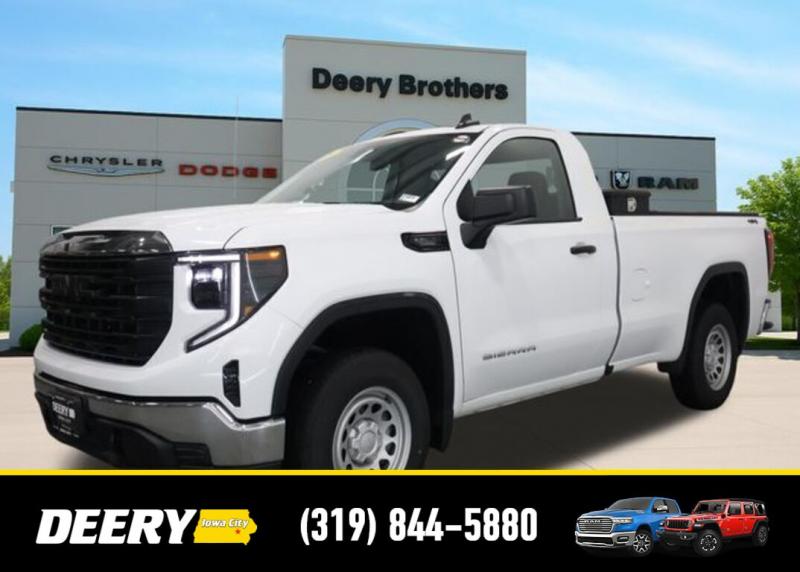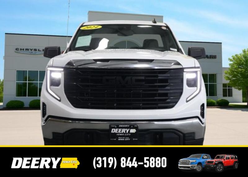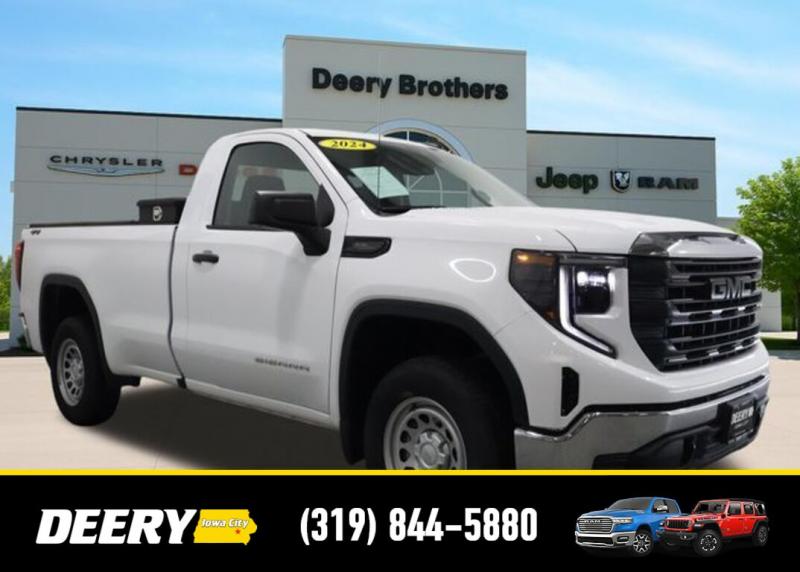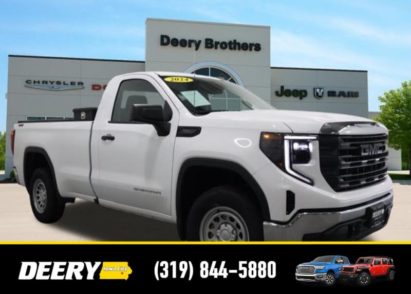 This Local Trade In is a One Owner Clean Carfax that is Deery Certified! It was traded in for a brand new Ram 1500! Deery Certified, Local Trade In, One Owner Carfax, Clean Carfax, 2 Charge/Data USB Ports, 220 Amp Alternator, Apple CarPlay/Android Auto, Auto High-beam Headlights, Auto-Locking Rear Differential, Automatic Emergency Braking, Chrome Header w/Flat Black Grille Insert Bars, Convenience Package, Cruise Control, Deep-Tinted Glass, Electric Rear-Window Defogger, EZ Lift Power Lock Release Tailgate, Following Distance Indicator, Front Frame-Mounted Black Recovery Hooks, Front Pedestrian Braking, Fully automatic headlights, GMC Connected Access Capable, HD Rear Vision Camera, Hitch Guidance, Integrated Trailer Brake Controller, IntelliBeam Automatic High Beam On/Off, Lane Keep Assist w/Lane Departure Warning, LED Cargo Area Lighting, Power Door Locks, Power Front Windows w/Driver Express Up/Down, Power Front Windows w/Passenger Express Down, Preferred Equipment Group 1SA, Premium audio system: GMC Infotainment System, Pro Value Package, Push Button Start, Remote Keyless Entry, Solar Absorbing Tinted Glass, Standard Suspension Package, Trailering Package, Wi-Fi Hotspot Capable, Wireless Apple CarPlay/Wireless Android Auto. The Deery discount that you see includes a Dealer Trade In Assistance Bonus discount of $1,000. Trade in must be 2008 or newer with less than 200,000 miles, and have a clean title. Clean CARFAX. CARFAX One-Owner. Certified. Recent Arrival! Summit White 2024 GMC Sierra 1500 Pro 2D Standard Cab EcoTec3 5.3L V8 15/20 City/Highway MPG 10-Speed Automatic 4WD Certification Program Details: DEERY CERTIFIED PRE-OWNED DETAILS: - $0 Deductible - 3 Months or 3,000 Miles (whichever comes first ) - Systems Covered: Gasoline/ Diesel Engine , Transmission , Drive Axle, Hybrid Components , Filters, Lubricants Taxes and Seals and Gaskets ** See Dealer for More Information. Serving Iowa City, Cedar Rapids, Waterloo, North Liberty, Davenport, Muscatine, Quad Cities, Des Moines, Keokuk, Mount Pleasant, Washington, and Dubuque. Don't miss out! Give us a call at [phone] to confirm availability and schedule a test-drive.
