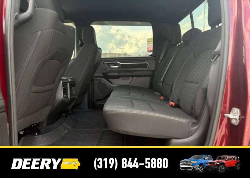 This Local Purchase is a One Owner Clean Carfax is Deery Certified and was purchased here brand new! Local Purchase, Deery Certified, One Owner Carfax, Clean Carfax, 115V Auxiliary Power Outlet, 2nd Row In Floor Storage Bins, 3 Rear Seat Head Restraints, 33 Gallon Fuel Tank, 4 Way Front Headrests, 400W Inverter, Anti-Spin Differential Rear Axle, Apple CarPlay/Android Auto, Auto High-beam Headlights, Auto Power-Folding Mirrors, Auto-Dimming Exterior Driver Mirror, Auto-Dimming Rear-View Mirror, Bed Utility Group, Big Horn Level 1 Equipment Group, Black Exterior Mirrors, Black Interior Accents, Black Premium Power Mirrors, Body Color Door Handles, Body Color Front Bumper, Body Color Rear Bumper w/Step Pads, Body Color Tailgate Handle, Bucket Seats, Convex Wide-Angle Exterior Mirror Insert, Deluxe Cloth Bucket Seats, Exterior 115V AC Outlet, Exterior Mirrors Courtesy Lamps, Exterior Mirrors w/Heating Element, Exterior Mirrors w/Supplemental Signals, Front Seat Back Map Pockets, Full Length Floor Console, Glove Box Lamp, Grille Surround 1 Body Color Texture 1 Black, Heated Front Rear Seats, Heated Steering Wheel, Leather Wrapped Steering Wheel, Manual Adjust 4-Way Front Passenger Seat, MOPAR 4 Adjustable Cargo Tie-Down Hooks, MOPAR Spray In Bedliner, ParkView Rear Back-Up Camera, Pick-Up Box Lighting, Power 2-Way Driver Lumbar Adjust, Power Adjust 8-Way Driver Seat, Power Adjustable Pedals, Quick Order Package 21Z Big Horn, Radio: Uconnect 5 W w/8.4' Display, RAM Grille Badge - Chrome, Rear 60/40 Folding Seat, Rear Center Armrest, Rear Power Sliding Window, Rear Window Defroster, Sport Appearance Package, Steering Wheel Mounted Audio Controls, Sun Visors w/Illuminated Vanity Mirrors, Trailer Brake Control, Universal Garage Door Opener, Wheels: 20' x 9' Aluminum Chrome Clad (WRK). The Deery discount that you see includes a Dealer Trade In Assistance Bonus discount of $1,000. Trade in must be 2008 or newer with less than 200,000 miles, and have a clean title. CARFAX One-Owner. Certified. Odometer is 13172 miles below market average! Recent Arrival! Delmonico Red Pearlcoat 2025 Ram 1500 Big Horn/Lone Star 4D Crew Cab 3.0L I6 19/24 City/Highway MPG 8-Speed Automatic 4WD Certification Program Details: DEERY CERTIFIED PRE-OWNED DETAILS: - $0 Deductible - 3 Months or 3,000 Miles (whichever comes first ) - Systems Covered: Gasoline/ Diesel Engine , Transmission , Drive Axle, Hybrid Components , Filters, Lubricants Taxes and Seals and Gaskets ** See Dealer for More Information. Serving Iowa City, Cedar Rapids, Waterloo, North Liberty, Davenport, Muscatine, Quad Cities, Des Moines, Keokuk, Mount Pleasant, Washington, and Dubuque. Don't miss out! Give us a call at [phone] to confirm availability and schedule a test-drive.