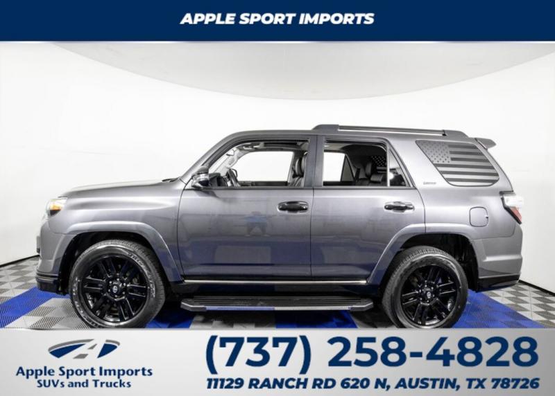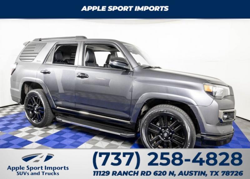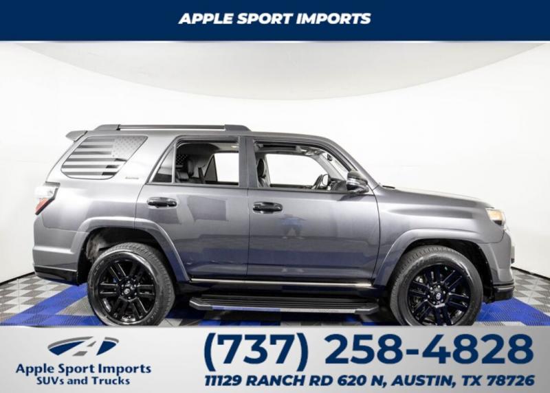 BEWARE OF OTHER DEALER'S "HIDDEN" FEES AND ADDENDUMS!!! APPLE SPORT IMPORTS HAS NO DEALER FEES OR ADDENDUMS ON ANY VEHICLES! Odometer is 32322 miles below market average!Magnetic Gray Metallic 2021 Toyota 4Runner Nightshade 4WD 4WD 5-Speed Automatic with Overdrive 4.0L V6 SMPI DOHC REARVIEW CAMERA, SUNROOF, LEATHER, FREE LIMITED LIFETIME POWERTRAIN WARRANTY, NO HIDDEN DEALER FEE'S, Four BRAND NEW Bridgestone Dueler A/T OEM Tires and alignment!!!, Yes!!! Sunroof!!!, 4WD, Black/Graphite w/Nightshade Leather Seat Trim, Apple CarPlay/Android Auto, Black Power Heated Mirrors, Black Roof Rails, Garage Door Opener, Moonroof w/Tilt Up & Slide, Navigation System, Nightshade Edition, Right & Left Individual Air Conditioner, Wireless Smart Entry Door Lock.CALL AHEAD TO VERIFY AVAILIBILITY!! INVENTORY CHANGES HOURLY. At Apple Sport Imports our Smart Price means you won't pay more but you will certainly get more! Free Lifetime Powertrain Warranty. Free Saturday Car Washes. OUR INVENTORY CHANGES HOURLY! Our professional, experienced sales staff has been trained specifically to make your buying experience as enjoyable and hassle-free as possible. Check out our reviews on GOOGLE and [url] While every effort has been made to ensure display of accurate data, the vehicle listings within this web site may not reflect accurate vehicle descriptions. Please confirm vehicle options, pricing and availability with Apple Sport Imports prior to purchase.