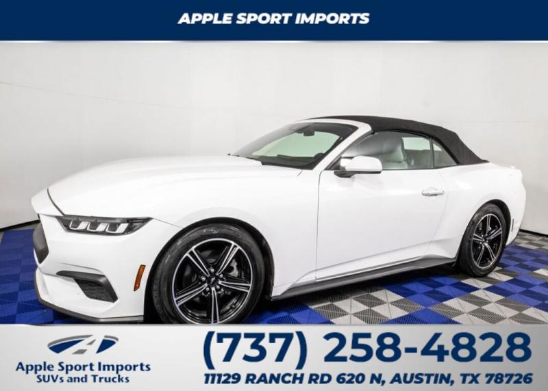 BEWARE OF OTHER DEALER'S "HIDDEN" FEES AND ADDENDUMS!!! APPLE SPORT IMPORTS HAS NO DEALER FEES OR ADDENDUMS ON ANY VEHICLES! CARFAX One-Owner. Clean CARFAX. Odometer is 1045 miles below market average! 22/33 City/Highway MPGOxford White 2024 Ford Mustang EcoBoost Premium RWD 10-Speed Automatic EcoBoost 2.3L I4 GTDi DOHC Turbocharged VCT NAVIGATION, REARVIEW CAMERA, FREE LIMITED LIFETIME POWERTRAIN WARRANTY, NO HIDDEN DEALER FEE'S, Drop The Top And Ride In Style !!!, ABS brakes, Climate Controlled Heated/Cooled Front Seats, Compass, Electronic Stability Control, Front dual zone A/C, Heated door mirrors, Illuminated entry, Low tire pressure warning, Remote keyless entry, Security Package, Traction control, Wheels: 18" x 8" Machined-Face Aluminum.CALL AHEAD TO VERIFY AVAILIBILITY!! INVENTORY CHANGES HOURLY. At Apple Sport Imports our Smart Price means you won't pay more but you will certainly get more! Free Lifetime Powertrain Warranty. Free Saturday Car Washes. OUR INVENTORY CHANGES HOURLY! Our professional, experienced sales staff has been trained specifically to make your buying experience as enjoyable and hassle-free as possible. Check out our reviews on GOOGLE and [url] While every effort has been made to ensure display of accurate data, the vehicle listings within this web site may not reflect accurate vehicle descriptions. Please confirm vehicle options, pricing and availability with Apple Sport Imports prior to purchase.