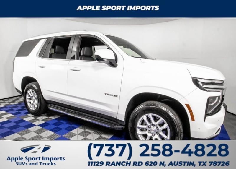BEWARE OF OTHER DEALER'S "HIDDEN" FEES AND ADDENDUMS!!! APPLE SPORT IMPORTS HAS NO DEALER FEES OR ADDENDUMS ON ANY VEHICLES! CARFAX One-Owner. Clean CARFAX. Odometer is 3204 miles below market average!Summit White 2025 Chevrolet Tahoe LT 4WD 4WD 10-Speed Automatic with Overdrive EcoTec3 5.3L V8 NAVIGATION, REARVIEW CAMERA, LEATHER, FREE LIMITED LIFETIME POWERTRAIN WARRANTY, NO HIDDEN DEALER FEE'S, 4WD, Jet Black w/Leather-Appointed Seat Trim, 1st and 2nd Row Color-Keyed Carpeted Floor Mats, 3-Spoke Wrapped Steering Wheel, 3rd Row Manual 60/40 Split-Folding Bench Seats, Color-Keyed Carpeting Floor Covering, Floor Console with Storage Area, Front Bucket Seats, Front Pedestrian and Bicyclist Braking, Frontal Driver and Outboard Passenger Airbags, License Plate Front Mounting Package, Memory Settings For Driver, Navigation system: Google built-in compatibility (select service plan required, terms and limitations apply), Preferred Equipment Group 1LT, Rear Power Liftgate, Remote Start, SiriusXM with 360L Trial Subscription, USB Ports, Wireless Phone Charging.CALL AHEAD TO VERIFY AVAILIBILITY!! INVENTORY CHANGES HOURLY. At Apple Sport Imports our Smart Price means you won't pay more but you will certainly get more! Free Lifetime Powertrain Warranty. Free Saturday Car Washes. OUR INVENTORY CHANGES HOURLY! Our professional, experienced sales staff has been trained specifically to make your buying experience as enjoyable and hassle-free as possible. Check out our reviews on GOOGLE and [url] While every effort has been made to ensure display of accurate data, the vehicle listings within this web site may not reflect accurate vehicle descriptions. Please confirm vehicle options, pricing and availability with Apple Sport Imports prior to purchase.