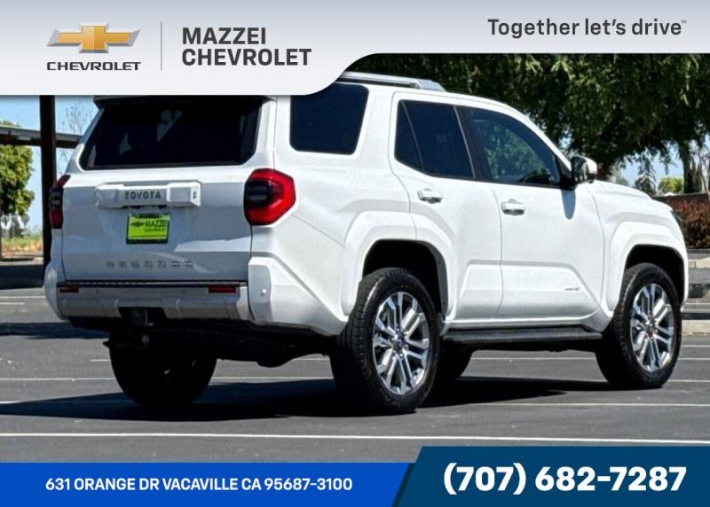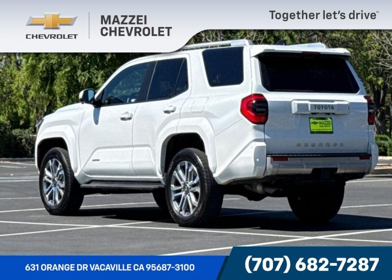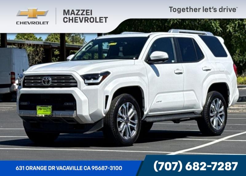 Thank you for considering Mazzei Chevrolet your family / veteran owned and operated dealership.2025 Toyota 4Runner Limited CARFAX One-Owner. Clean CARFAX. Blue tooth, Back UP Camera, Third Row Seating, One Owner CARFAX, Prior Personal Lease Vehicle, 4Runner Limited, 4D Sport Utility, 2.4L 4-Cylinder, 4WD, Portobello w/Leather Seat Trim, ABS brakes, Active Cruise Control, Alloy wheels, Compass, Electronic Stability Control, Front dual zone A/C, Heated & Ventilated Front Bucket Seats, Heated door mirrors, Heated front seats, Illuminated entry, Leather Seat Trim, Low tire pressure warning, Navigation System, Power moonroof, Remote keyless entry, Traction control.