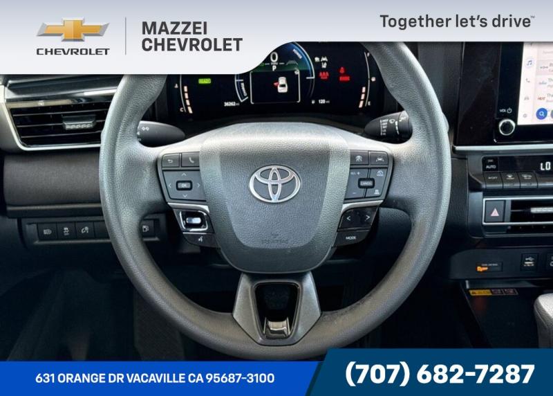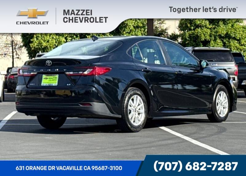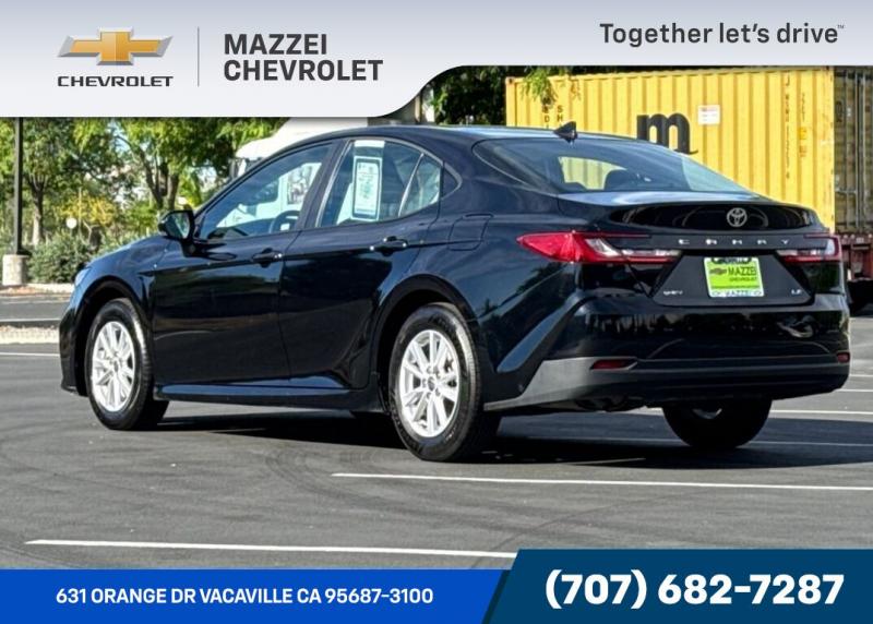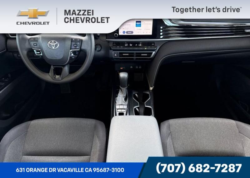 Thank you for considering Mazzei Chevrolet your family / veteran owned and operated dealership.2025 Toyota Camry LE CARFAX One-Owner. Clean CARFAX. Blue tooth, Back UP Camera, One Owner CARFAX, Prior Rental, HYBRID, Camry LE, 4D Sedan, 2.5L 4-Cylinder 16V DOHC, ABS brakes, Active Cruise Control, Alloy wheels, Electronic Stability Control, Front dual zone A/C, Heated door mirrors, Illuminated entry, Low tire pressure warning, Remote keyless entry, Traction control.Odometer is 657 miles below market average! 53/50 City/Highway MPG